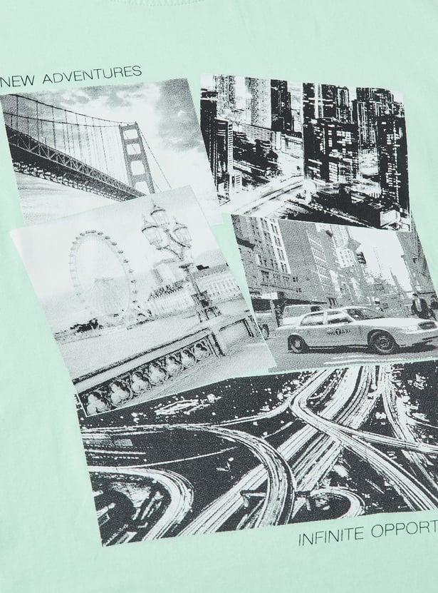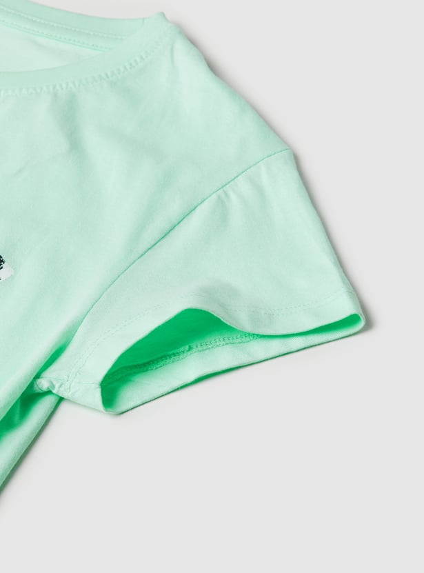 Add a playful edge to her casual collection with this graphic print T-shirt. Featuring half sleeves and a round neck, it offers a fun design that's perfect for adventures and playtime.