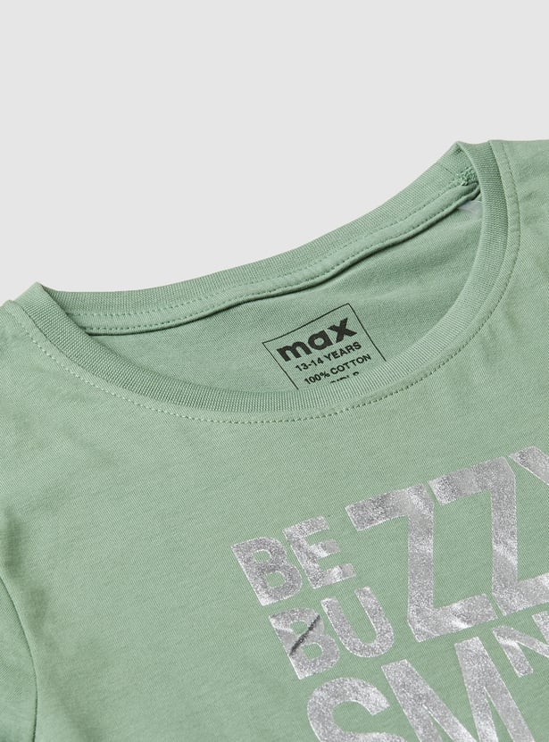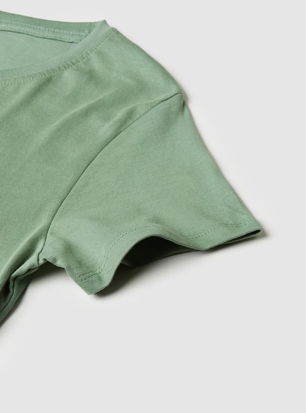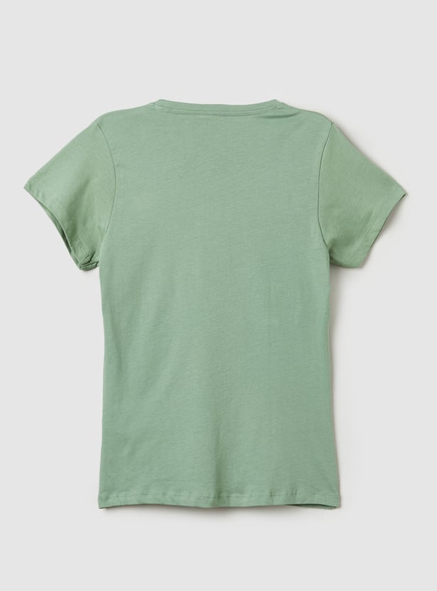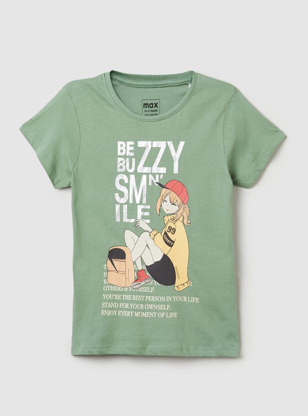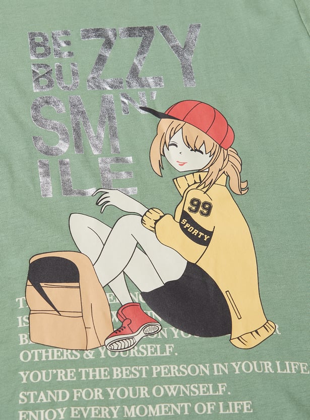Add a playful edge to her casual collection with this graphic print T-shirt. Featuring half sleeves and a round neck, it offers a fun design that's perfect for adventures and playtime.