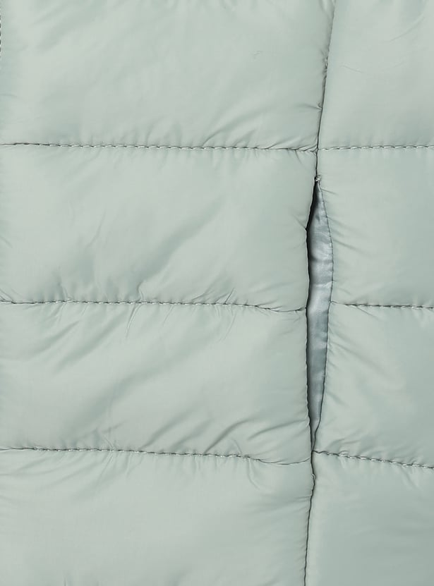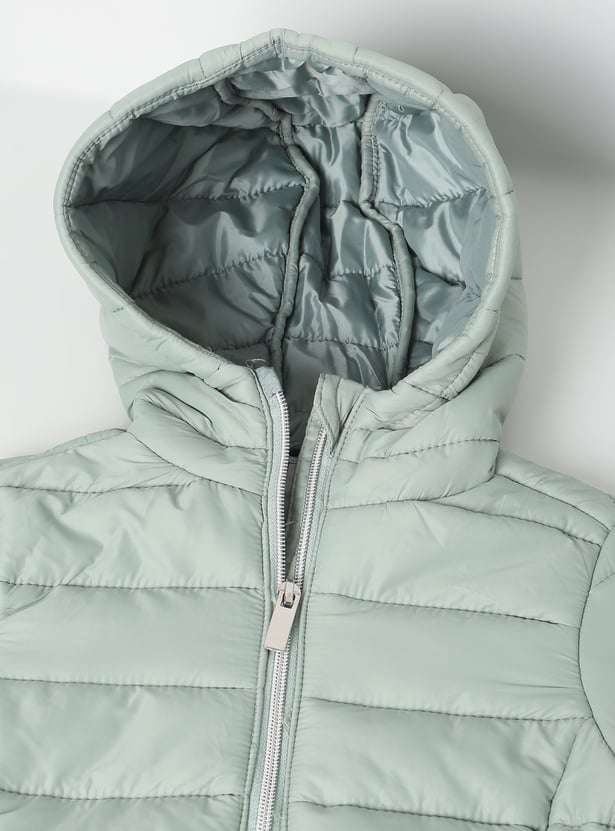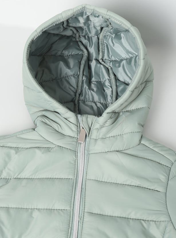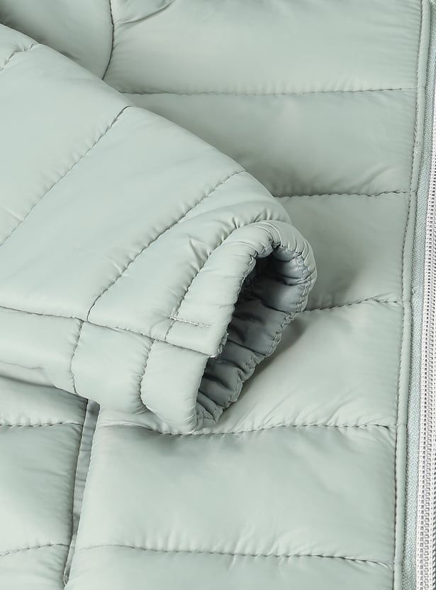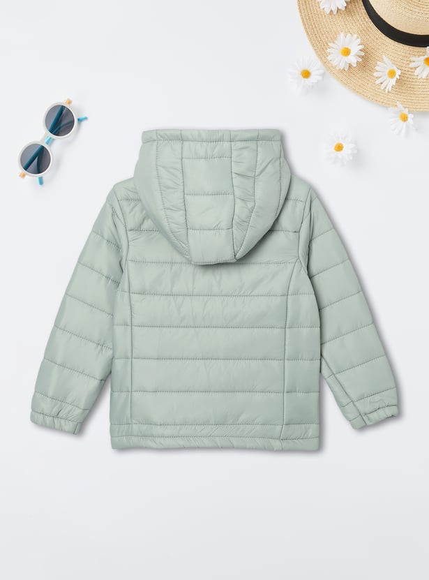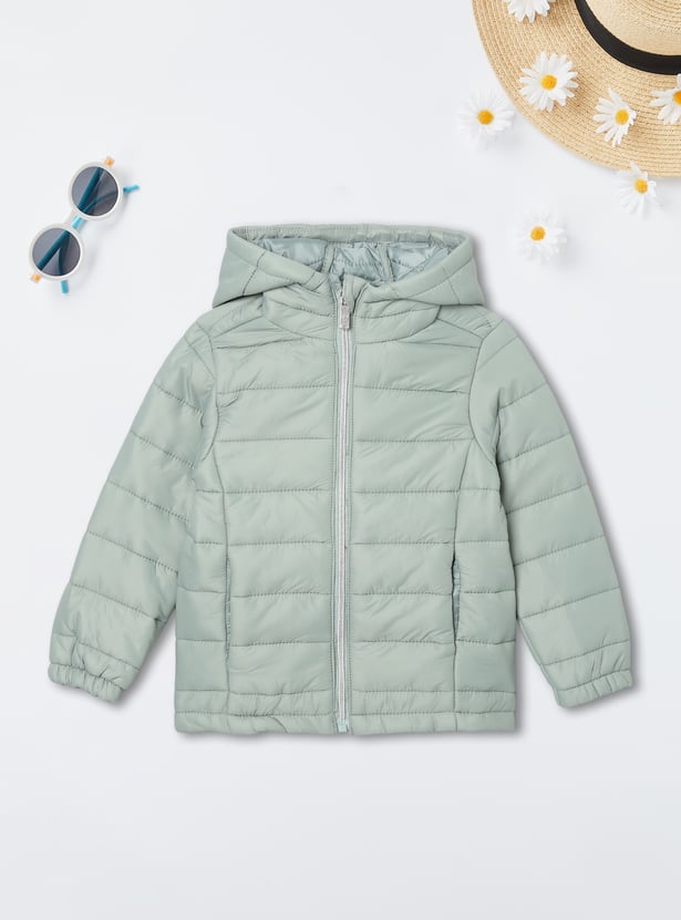 This hooded Puffer jacket is designed to keep your little one warm and comfortable during chilly days. It features a front zip closure with a zip garage for added protection and side pockets for practicality.