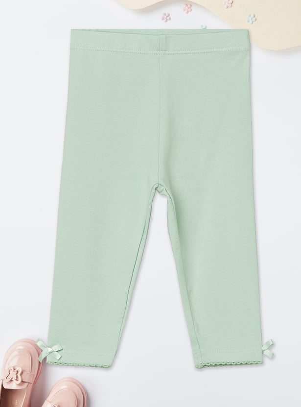 Girls Knitted Bow Hem Leggings