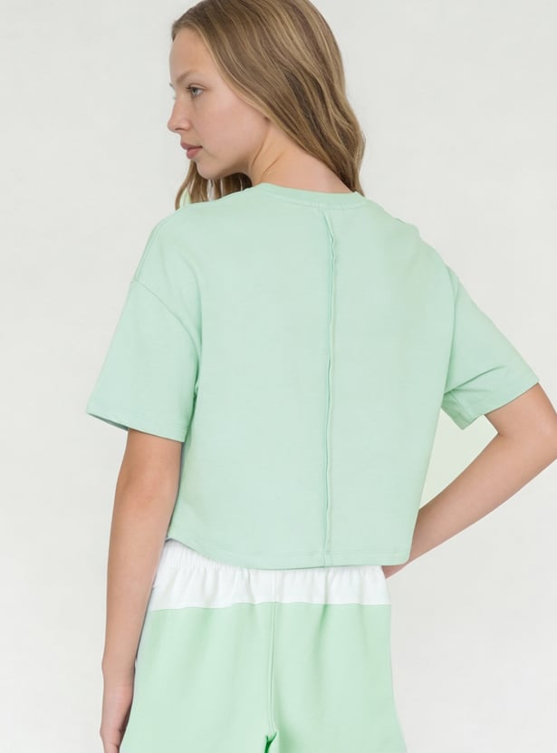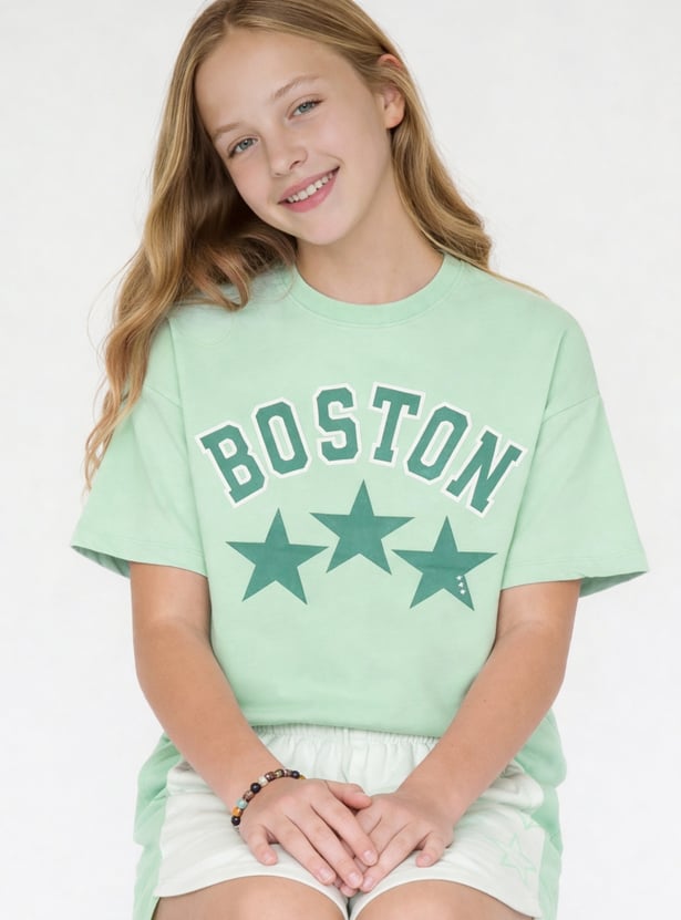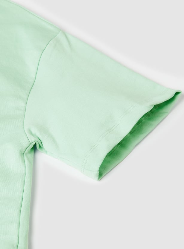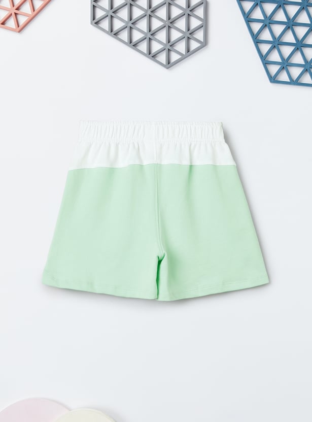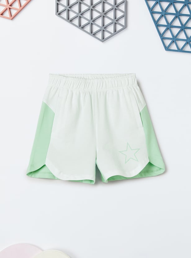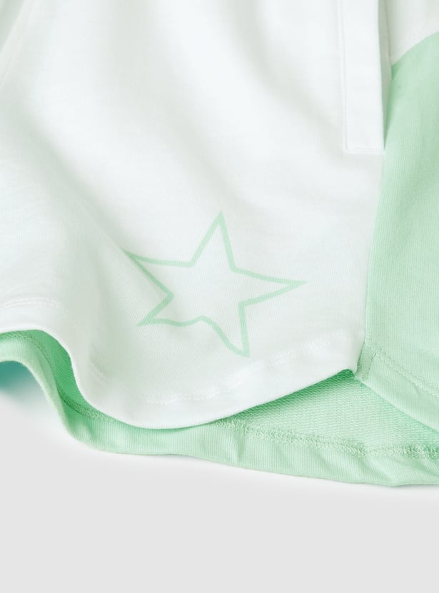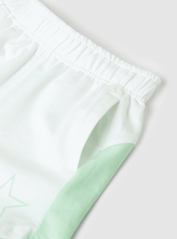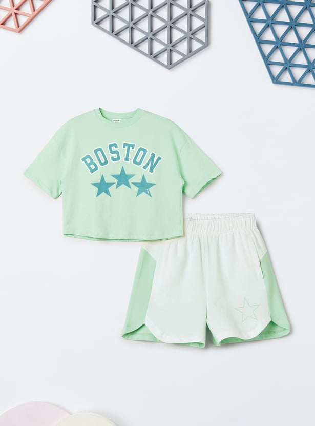 Playful and coordinated, this printed shorts set brings together comfort and style. The T-shirt features a classic round neck and half sleeves, while the colourblock shorts with an elasticated waist add a sporty, vibrant touch.