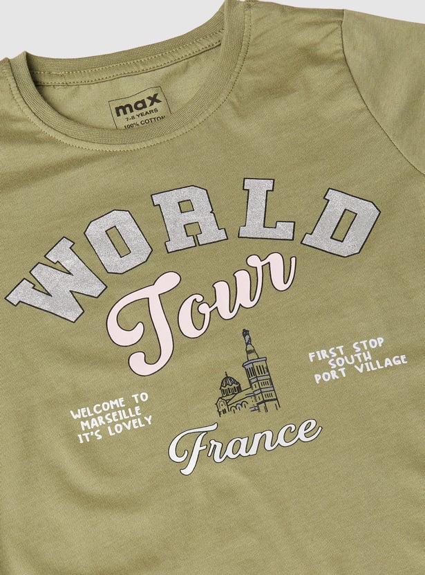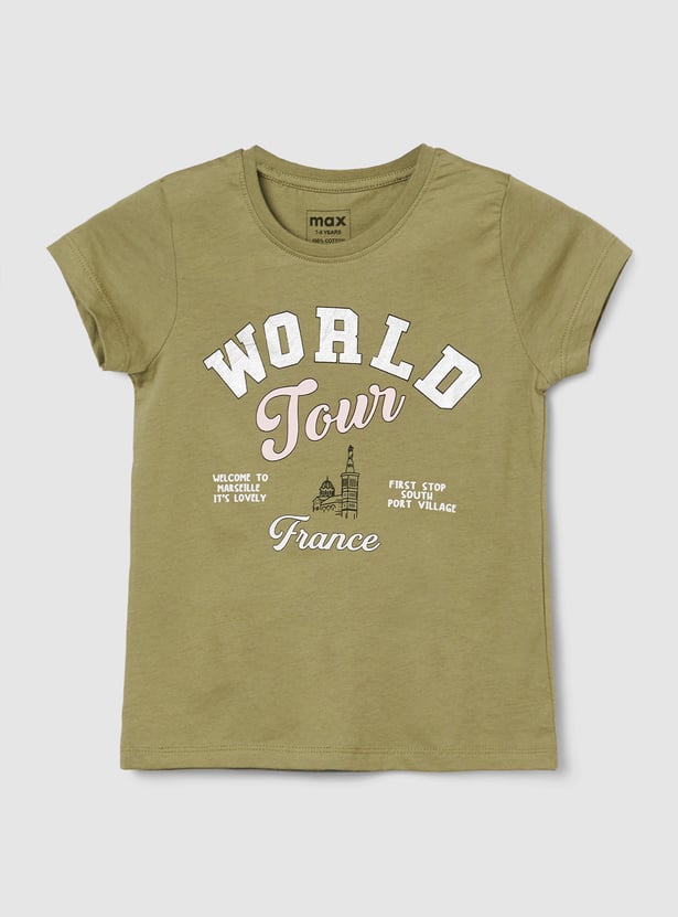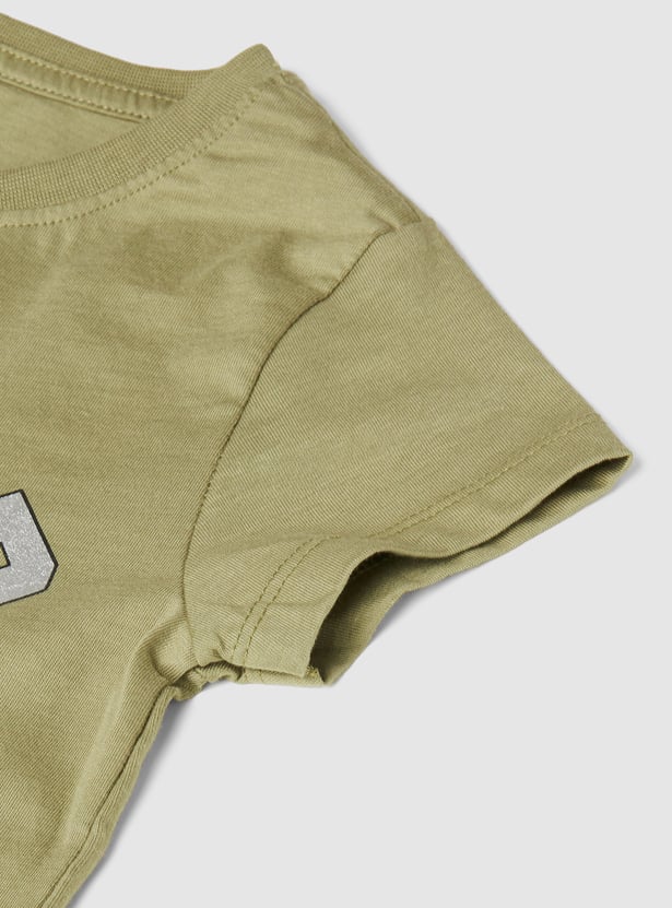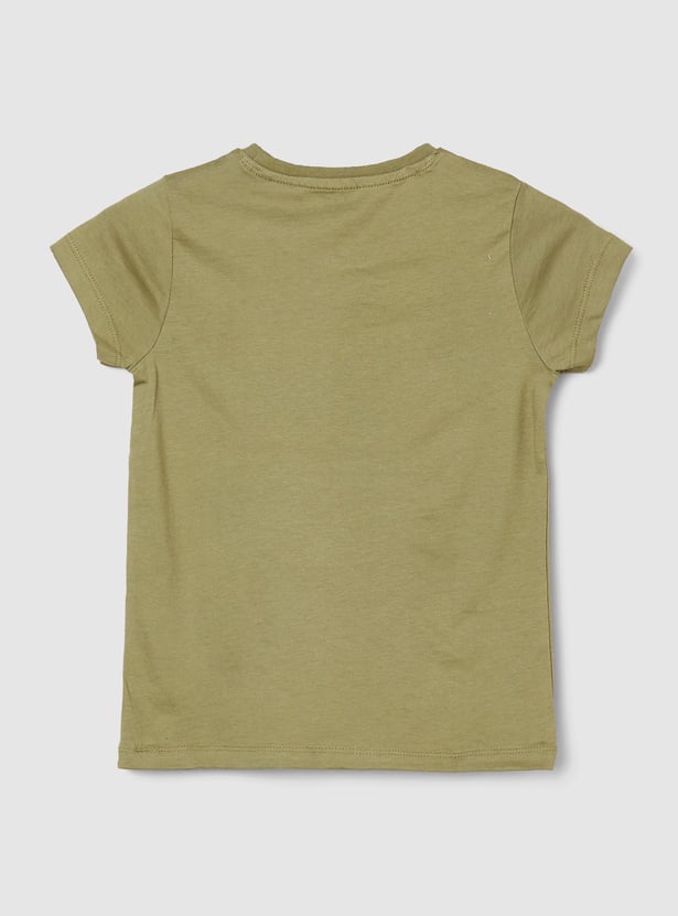 This printed t-shirt features a round neck and half sleeves, offering a fun and comfortable style perfect for everyday wear and play.