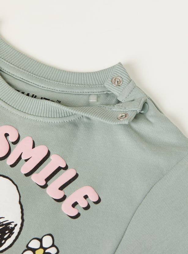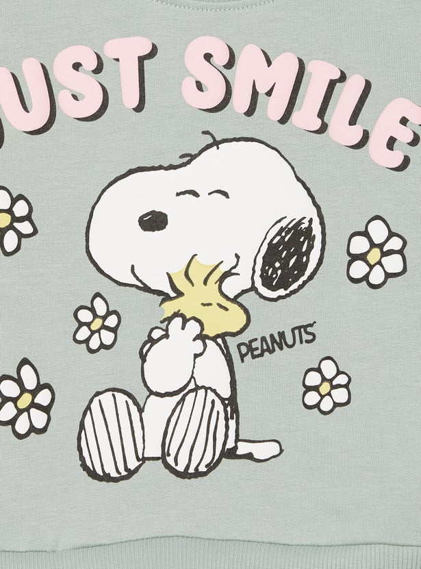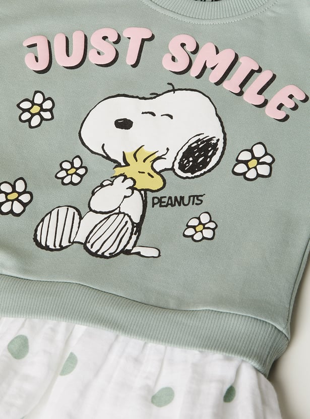 Let her stay snug in style with this cosy a-line dress, featuring a classic round neck, full sleeves, and a flared hem for playful movement. The charming Snoopy print adds a cheerful touch, making it ideal for laid-back days with a hint of flair.