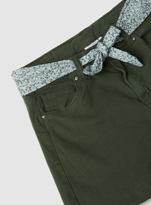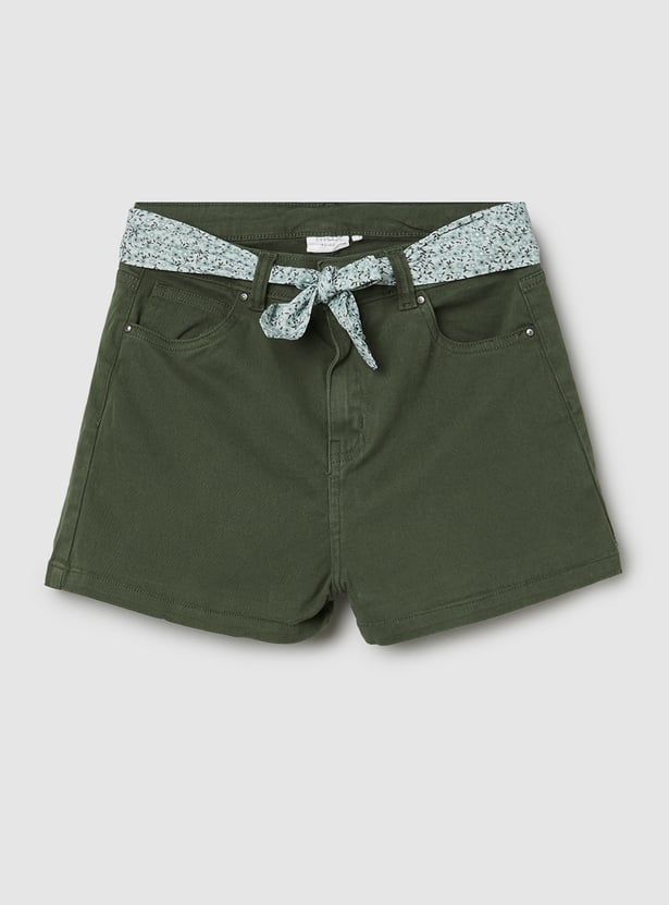 Stay cool and stylish with these solid belted shorts, featuring 5 pockets for practical storage. The belt loops and button closure ensure a secure and comfortable fit, making them perfect for casual outings or relaxed days.