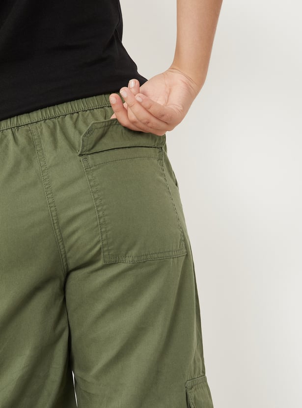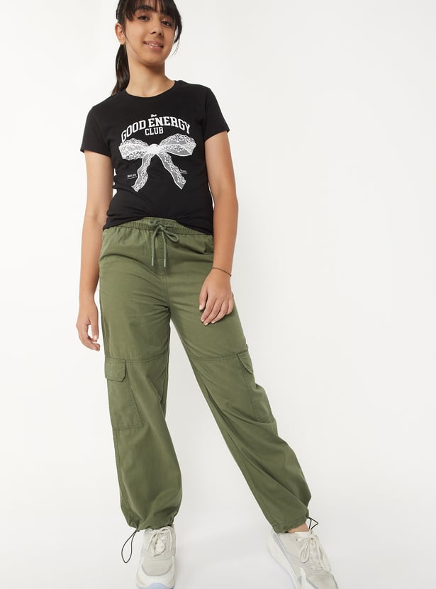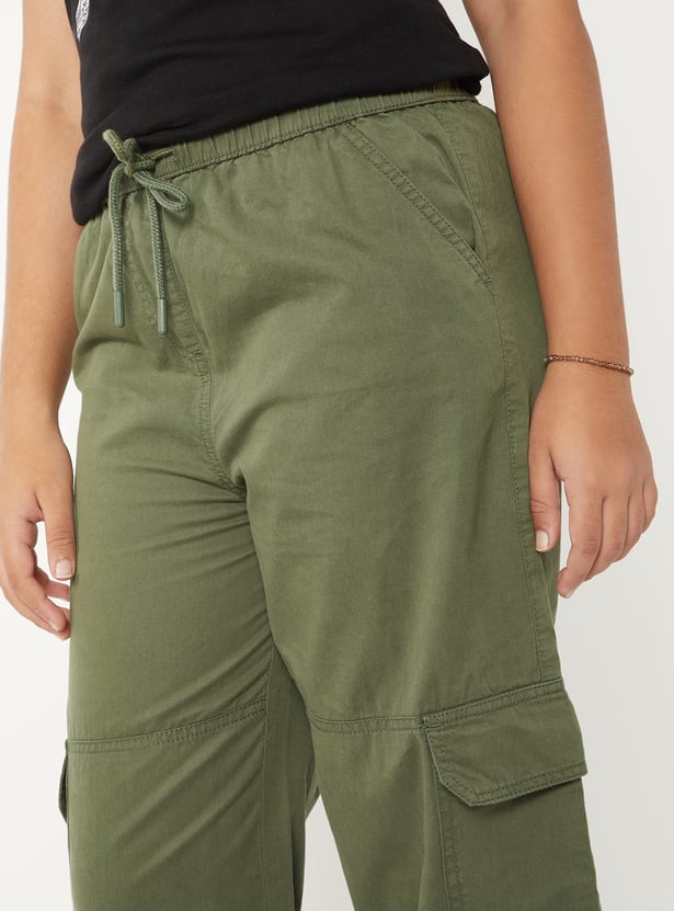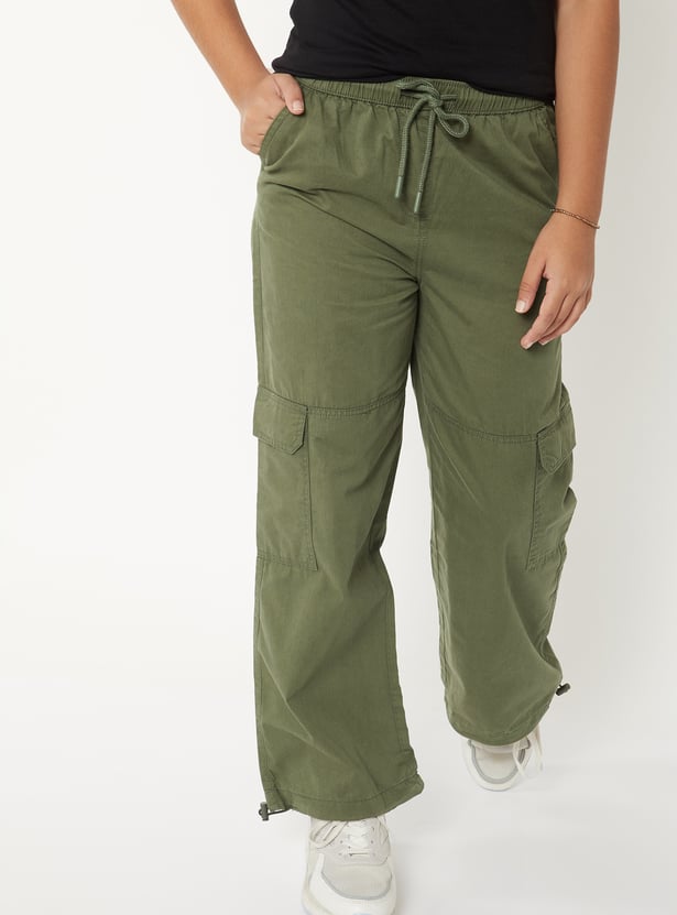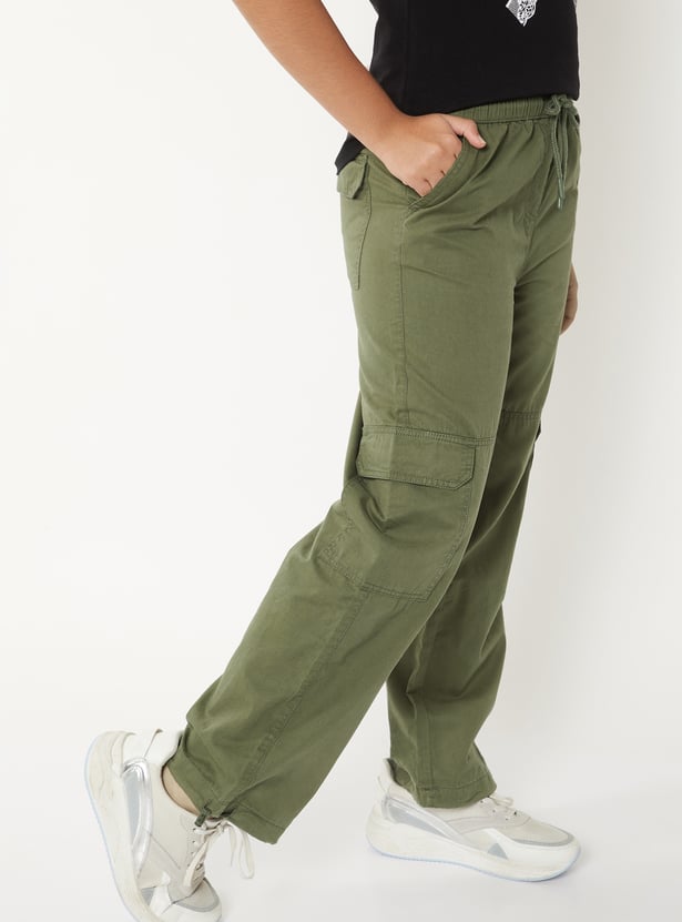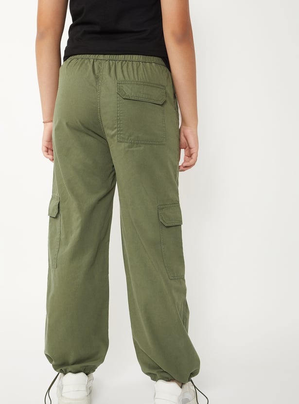 Girls Solid Cargo Parachute Trousers