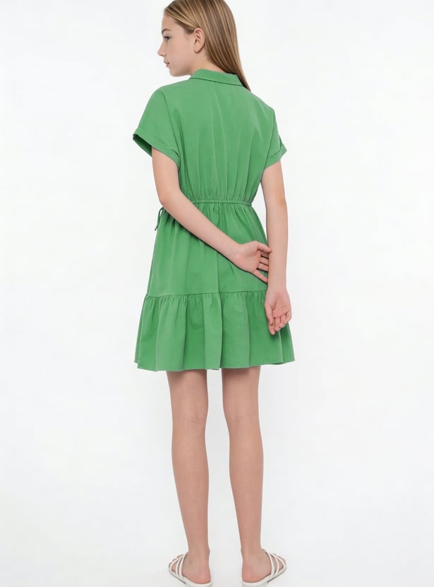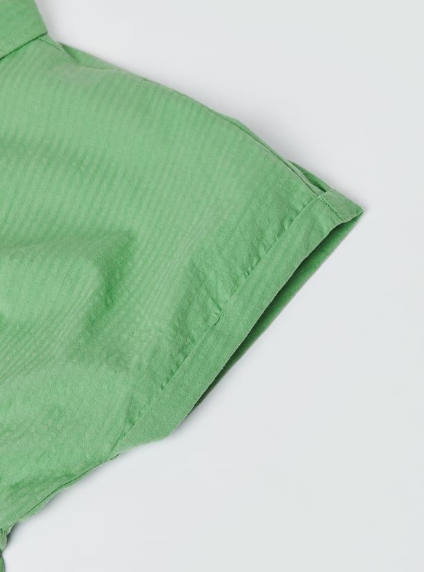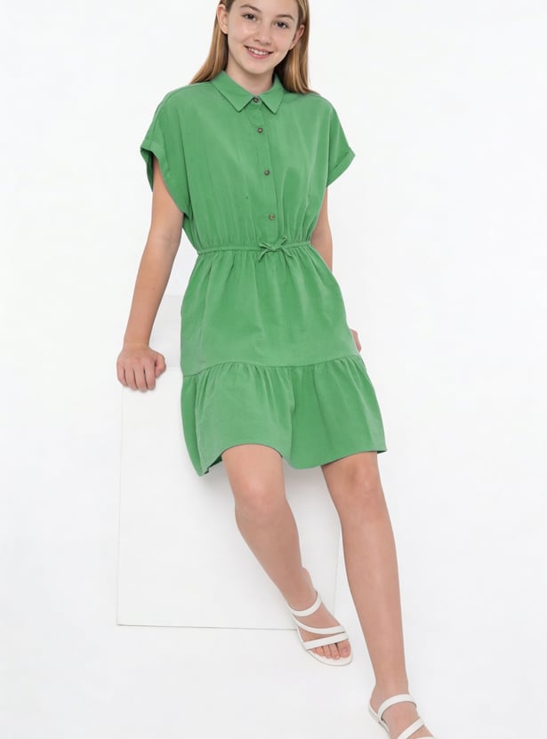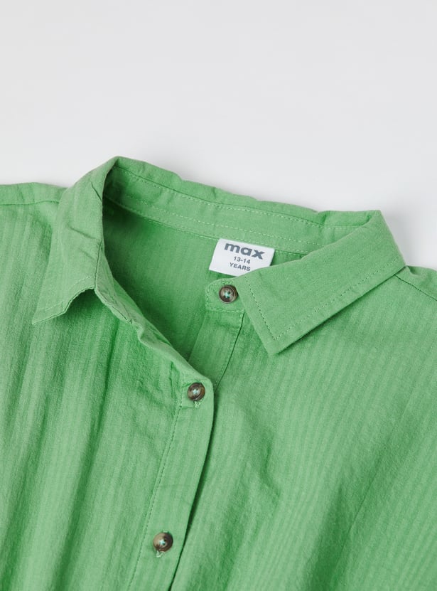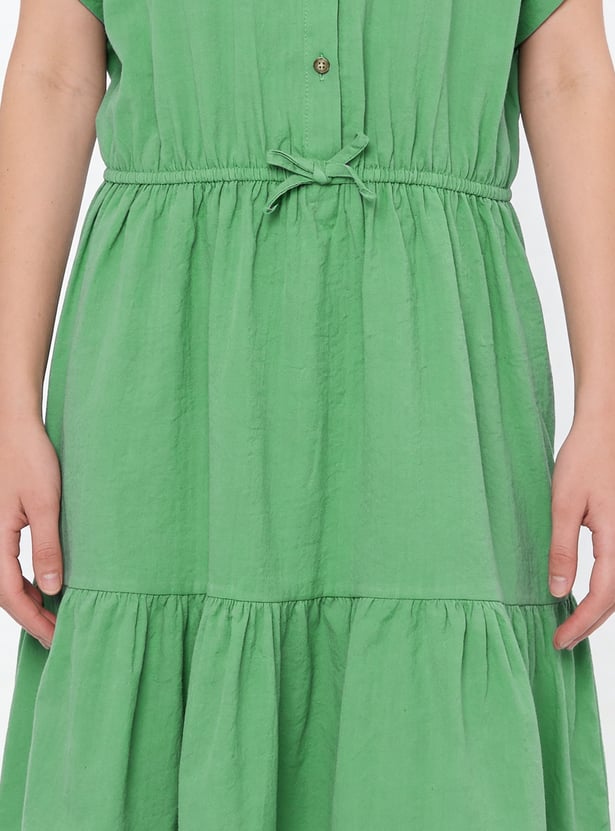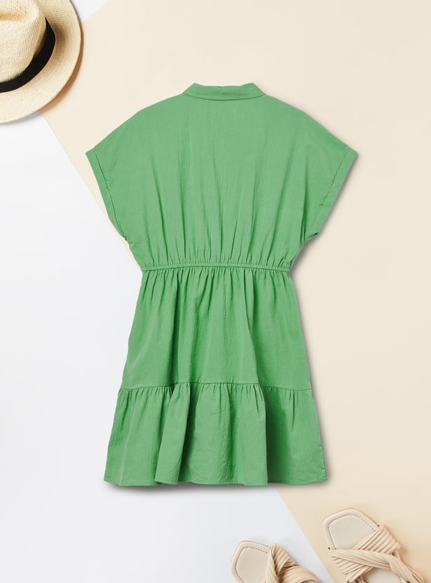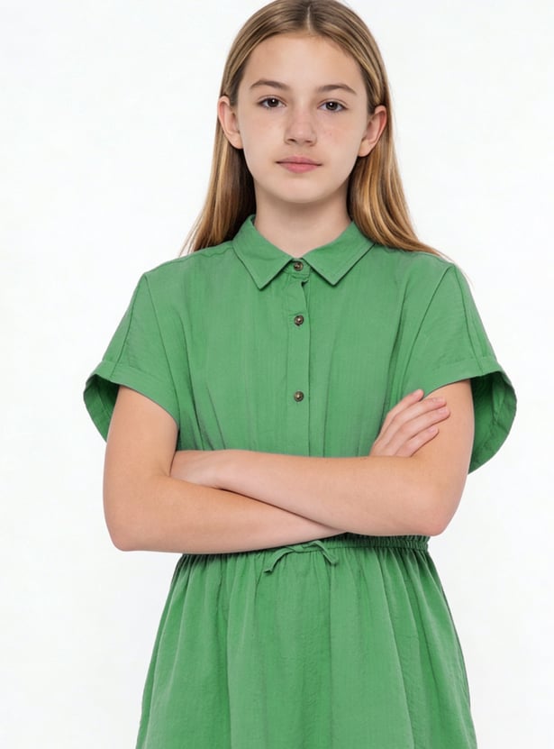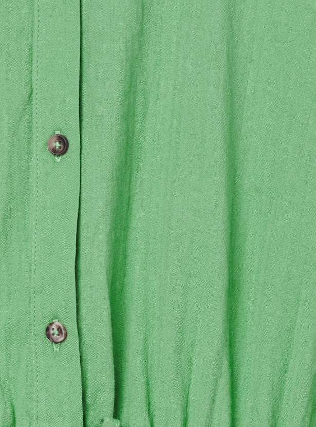 Add a touch of elegance to your wardrobe with this striped cinched-waist dress. Featuring a spread collar, button placket, and extended half sleeves, it blends classic detailing with a modern silhouette.