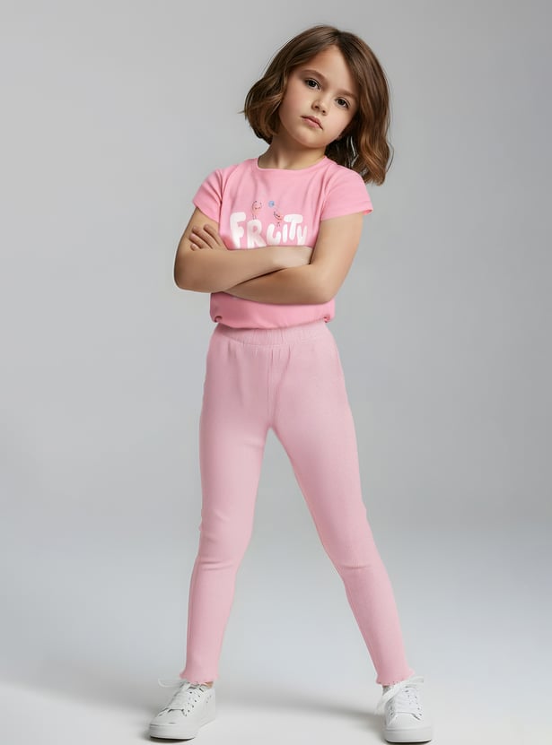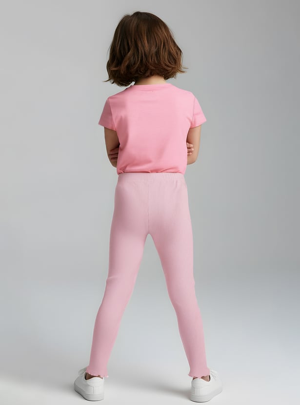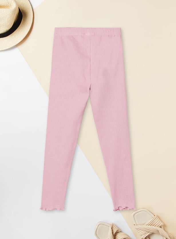 These textured leggings bring comfort and flair to your everyday style. Designed with an elasticated waist, they offer a snug, flexible fit perfect for lounging or light activity