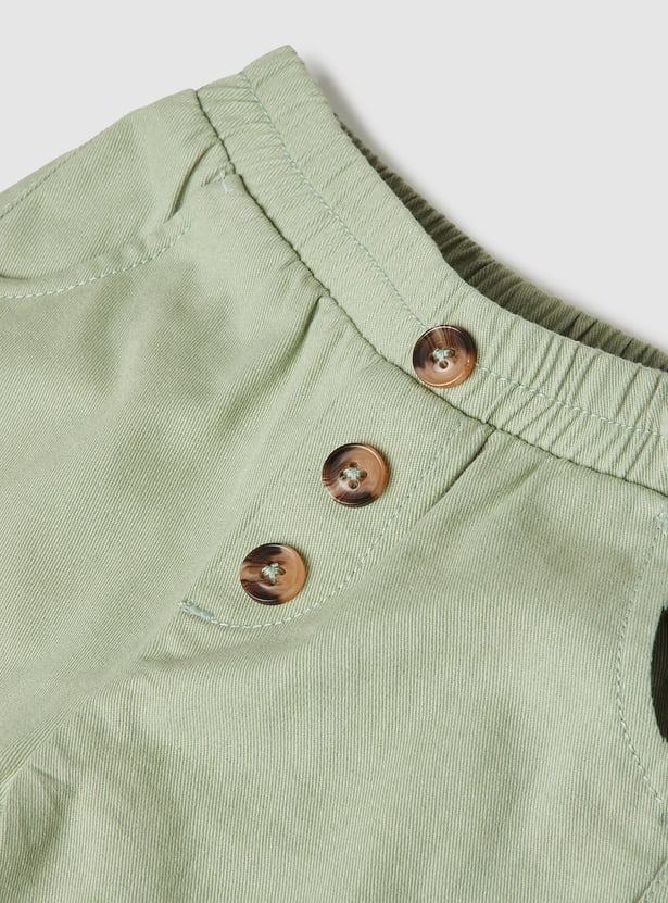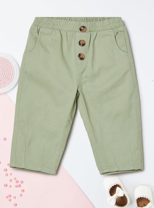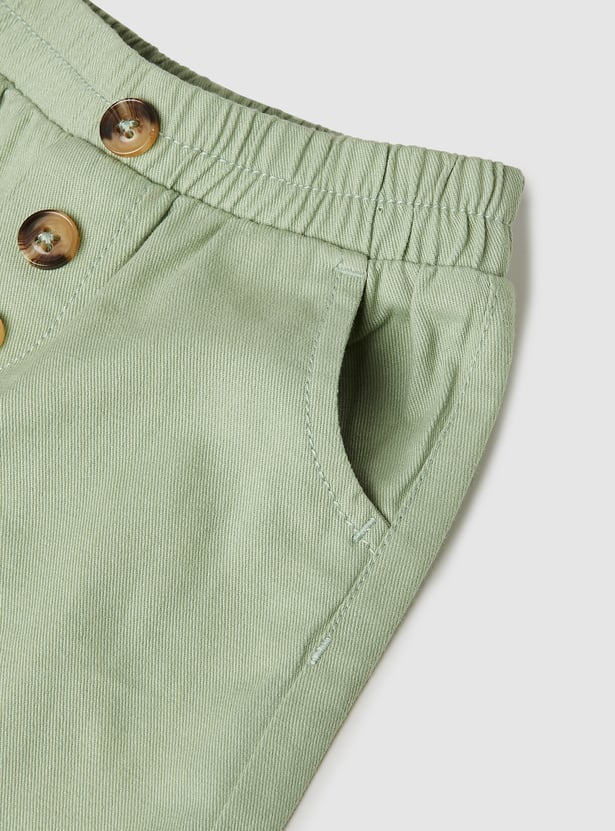 These textured trousers are designed with comfort in mind! Featuring an elasticated waist for an easy fit, button placements on the front for a touch of detail, and handy side pockets for little treasures. Perfect for playtime and beyond!