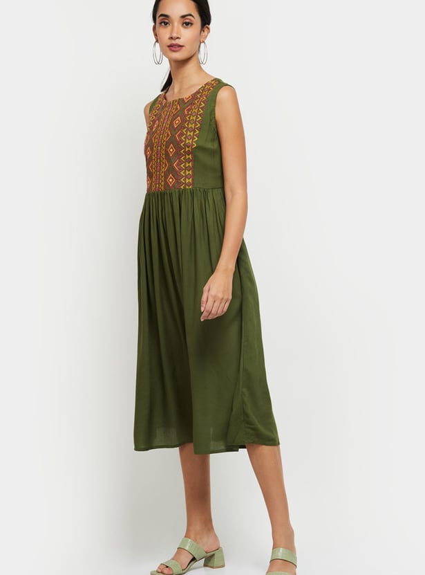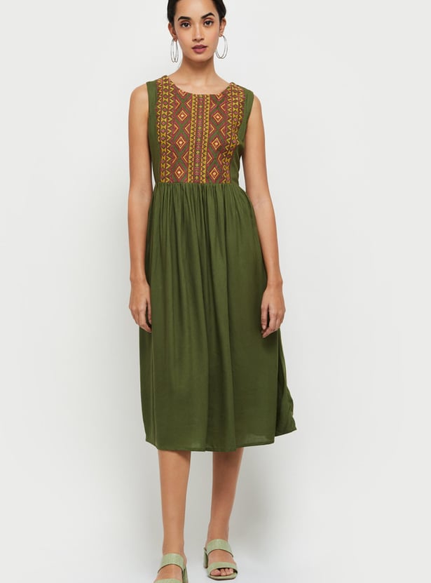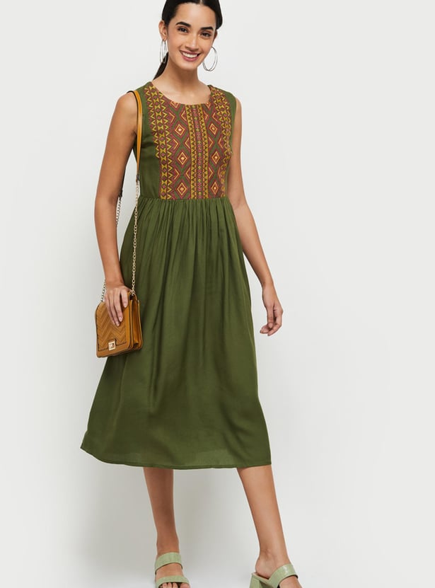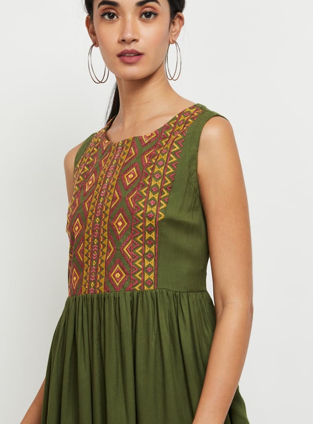 Women Embroidered Sleeveless Flared Ethnic Dress