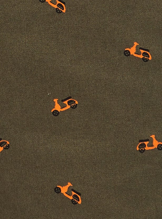 A summertime staple, this pair of shorts is highlighted with all-over scooter prints. It is tailored in a slim fit profile with a belt loop waist, flat front, side pockets, and buttoned welt pockets. Team up this pair of shorts with a shirt and sneakers to perfect your off-duty look.