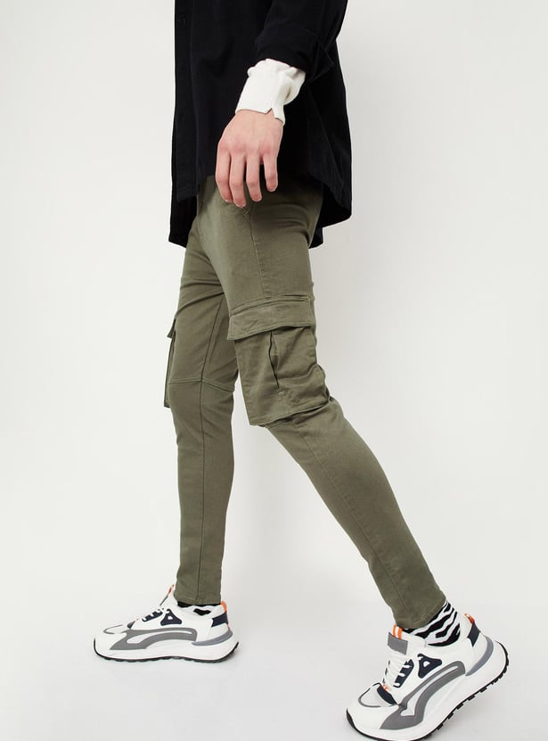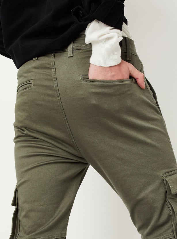 Men Carrot Fit Coloured Cargo Jeans