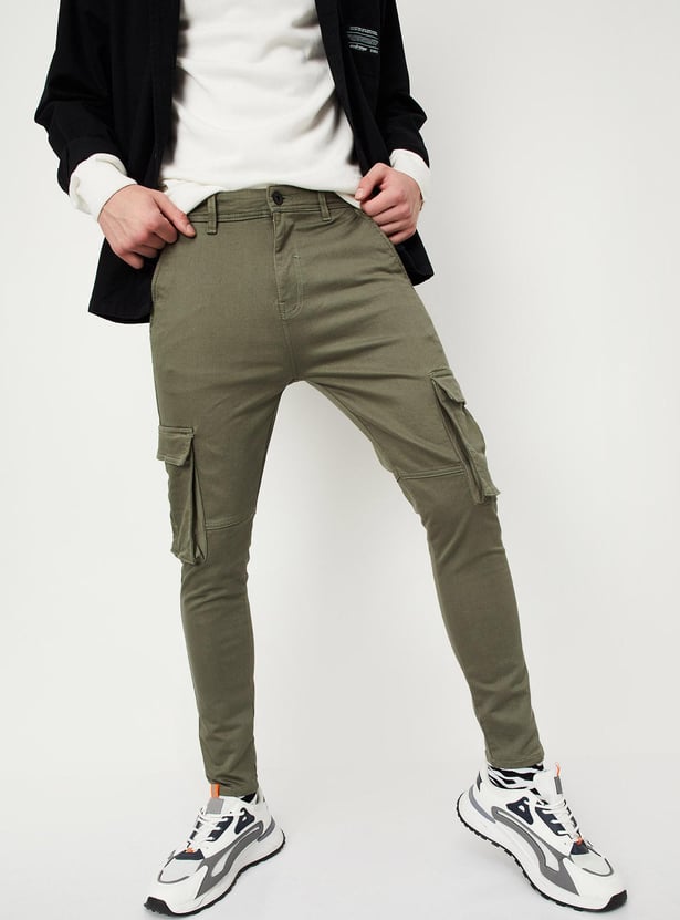 Refresh your street style with this pair of jeans. It has a belt loop waist, side pockets, rear welt pockets, side cargo pockets, and a carrot-fit profile. For a dapper look, Style this pair with a tee and sneakers.