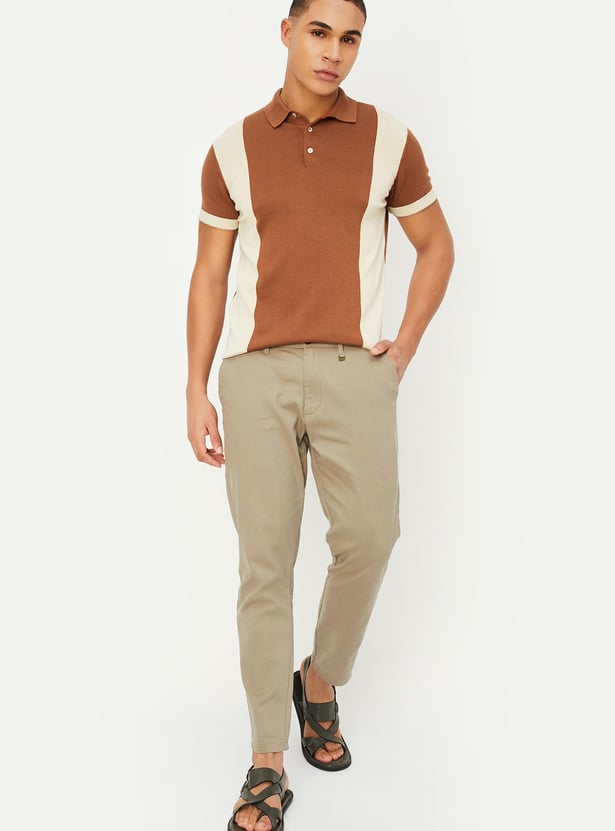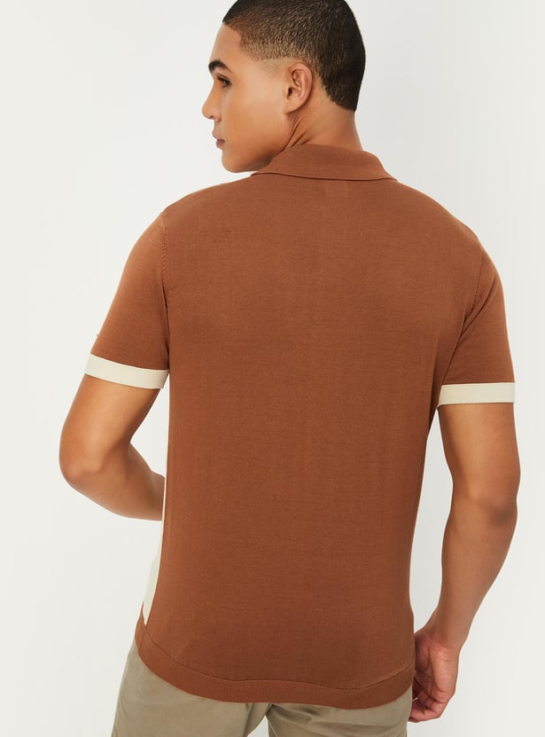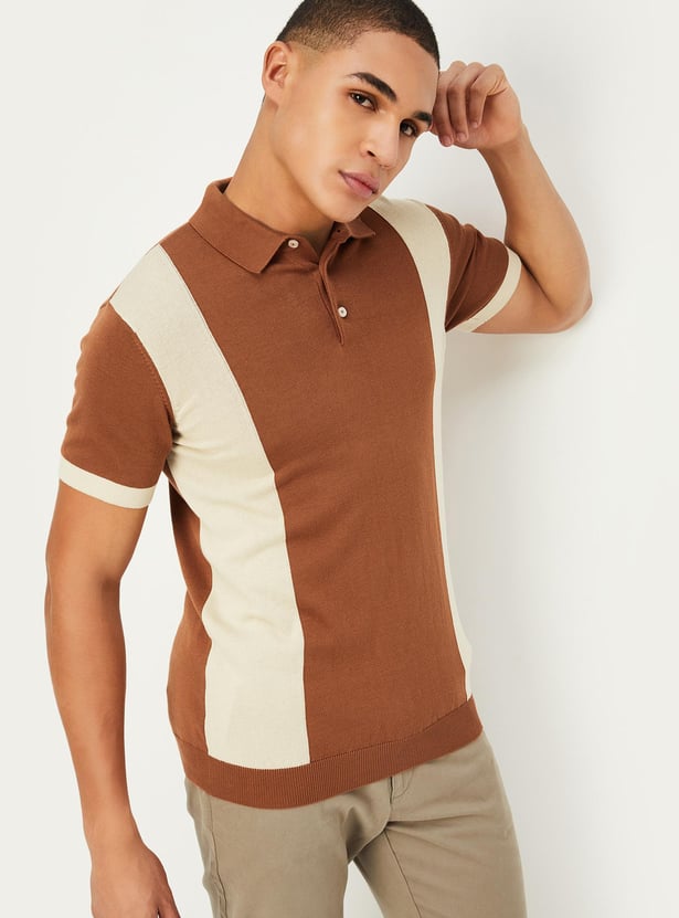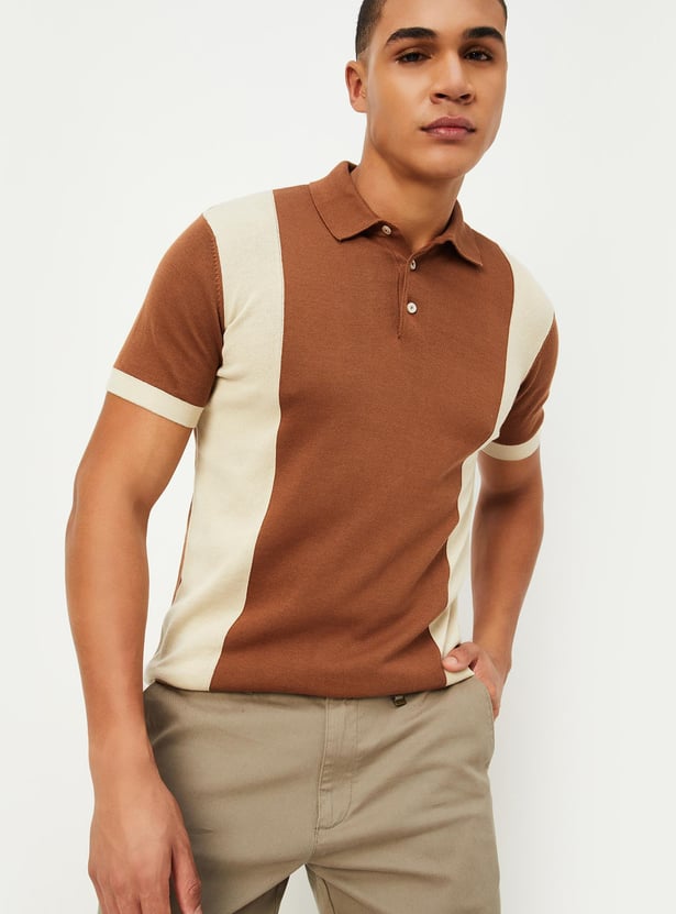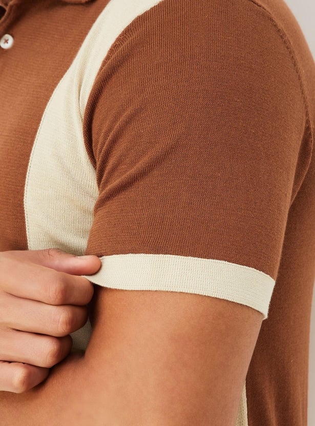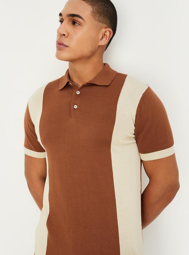 Men Colorblocked Flat Knit Polo