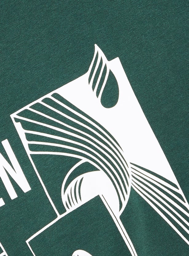 Spice up your wardrobe with this graphic-printed T-shirt. It features a crew neck and half sleeves. Team it up with a pair of trousers and lace-up shoes to complete the look.