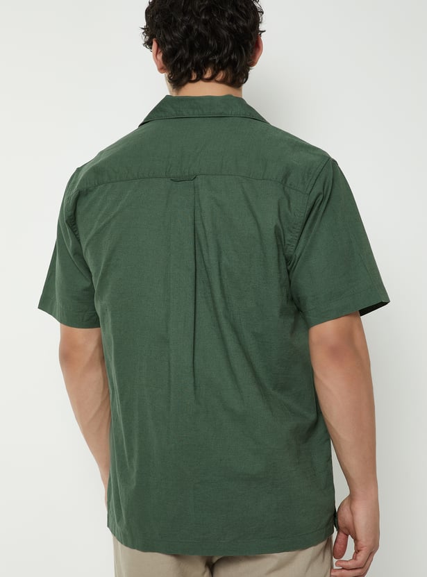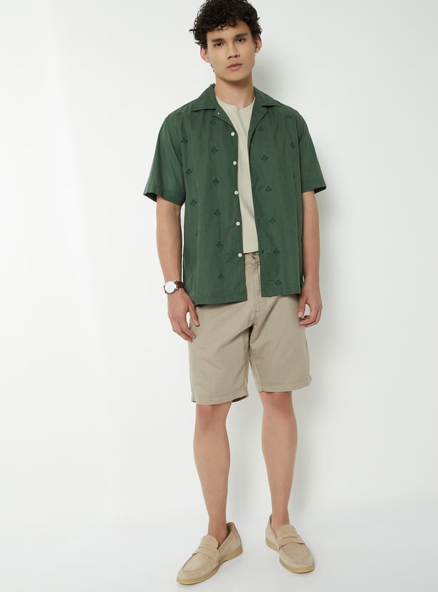 Stylish and refined, this embroidered regular fit shirt features a relaxed resort collar and a neat button closure. The half sleeves add comfort and ease, while the embroidery detail elevates the look with subtle charm.