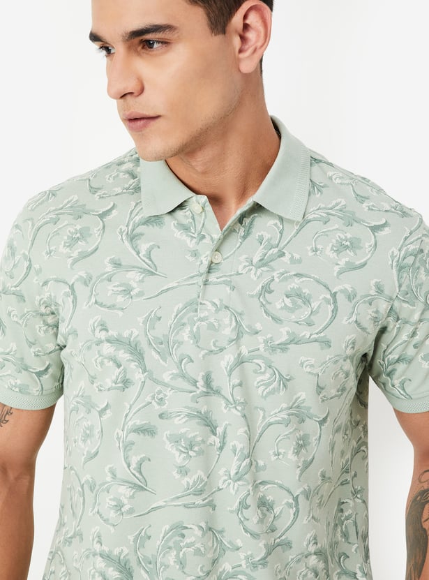 Men Floral Print Polo T-shirt