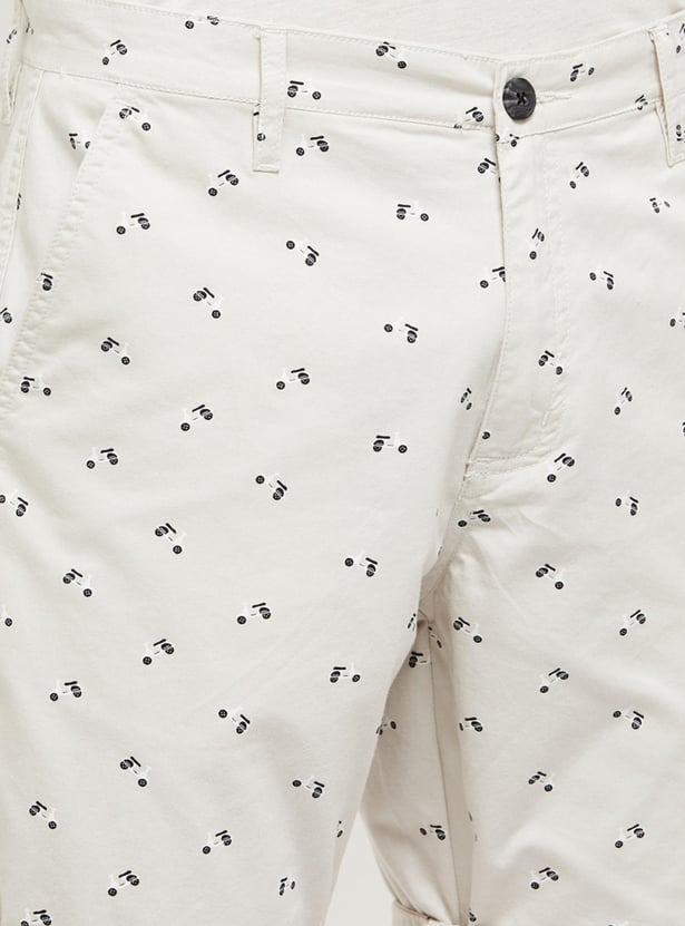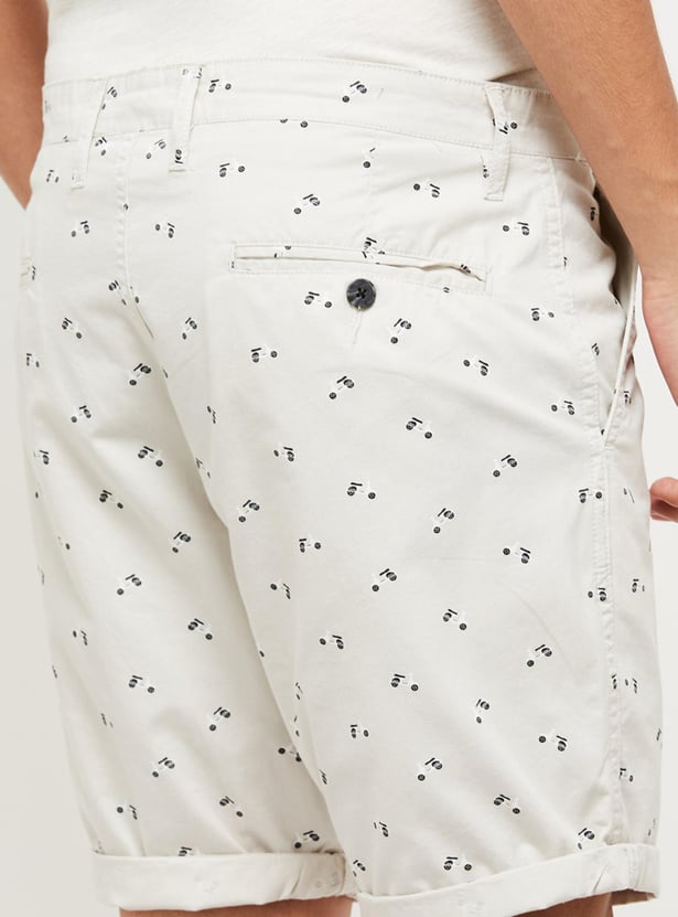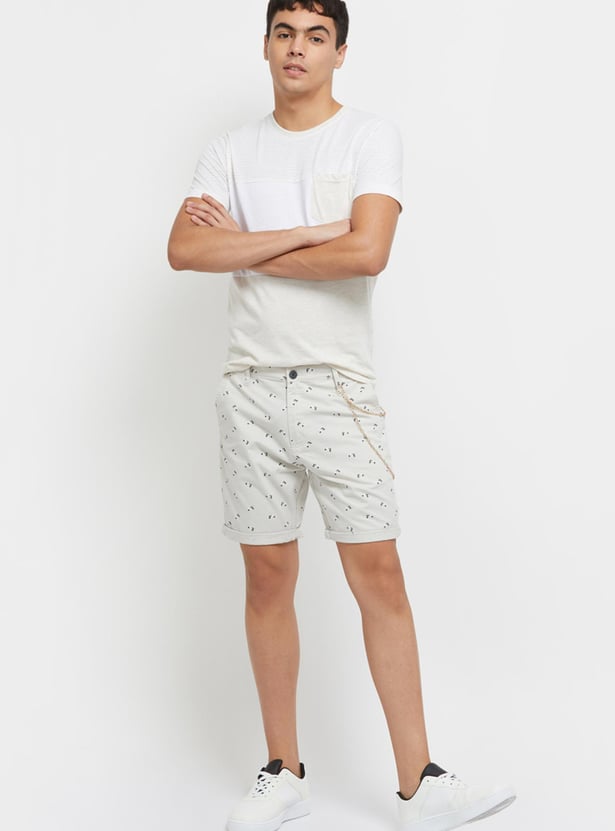 Amp up your casual outfit with this pair of shorts. It comes with prints on the surface and buttoned closure.