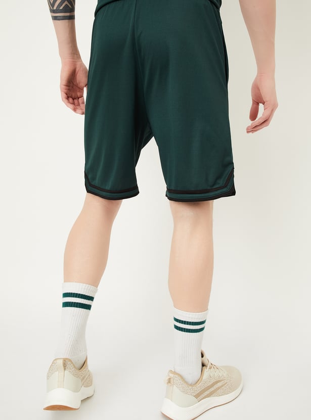 Gear up in style with these printed sports shorts featuring a mid-rise, drawstring closure, side pockets, and an above-knee length for easy movement and comfort.