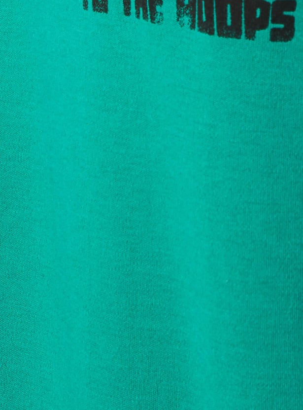 Breezy and sporty, this T-shirt is crafted in an oversized profile. It is designed with a graphic print at the back and chest and short sleeves.