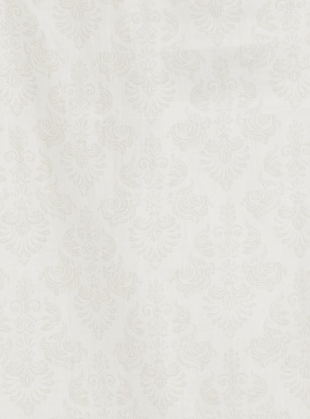 Make a sleek statement with this patterned satin finish slim fit formal shirt, featuring a spread collar, button placket, full sleeves with button cuffs, and a patch pocket. The smooth satin texture adds a refined edge to your ensemble.