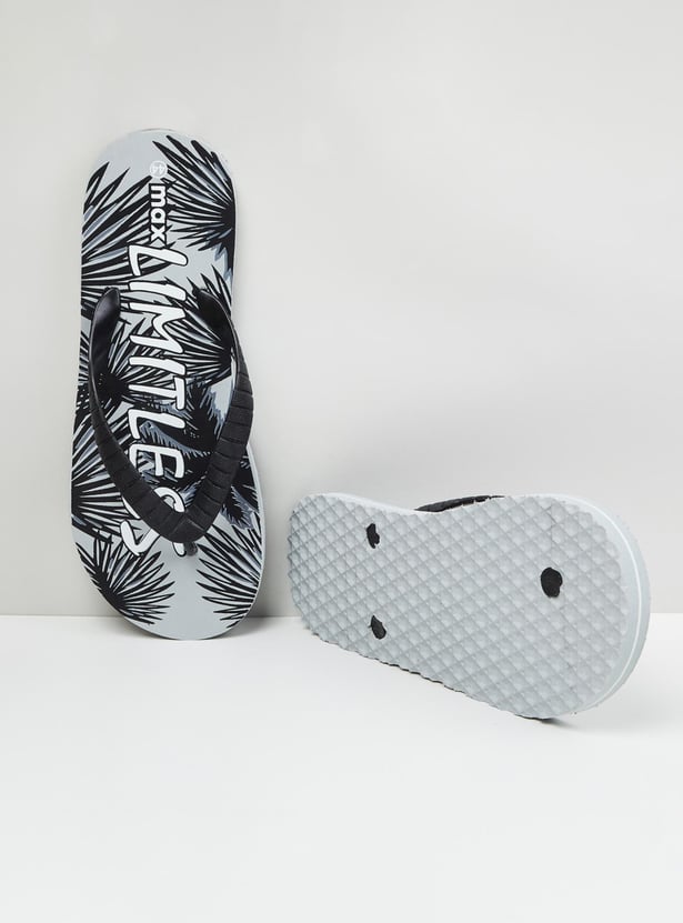 Breezy and easy, this pair of flip flops is detailed with a printed surface and features a soft and comfortable footbed.