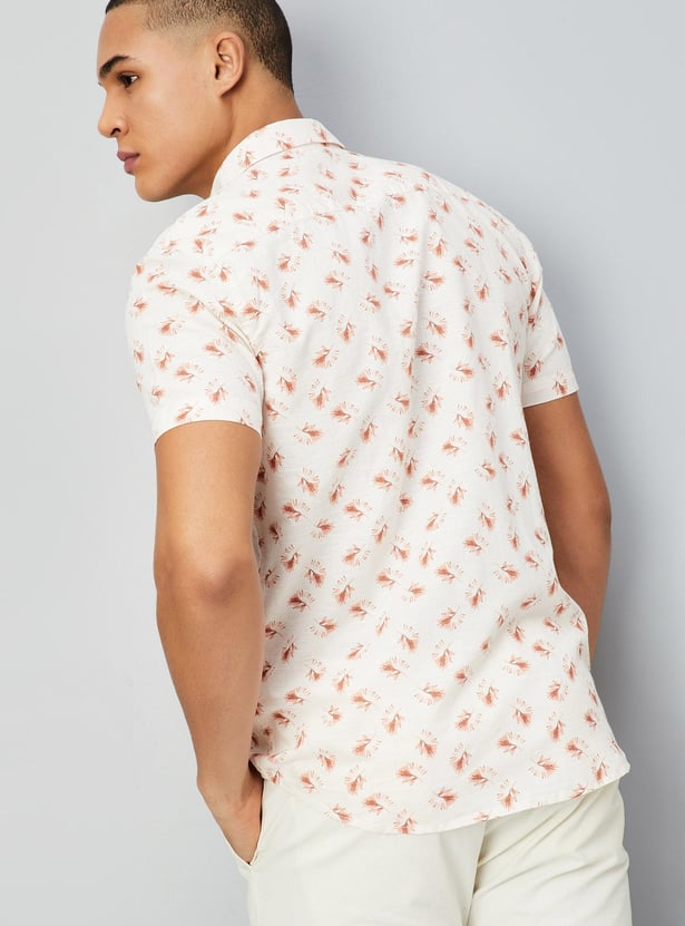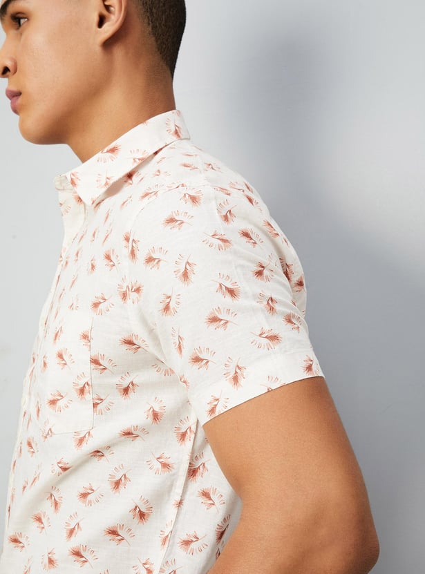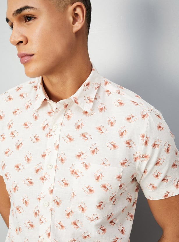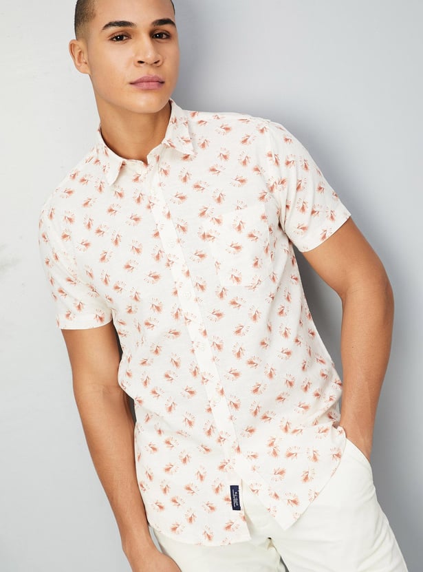 Vamp up the casual vibe in this printed smart casual shirt. Featuring a spread collar with full button placket,short sleeves and a curved hem perfect for a weekend.