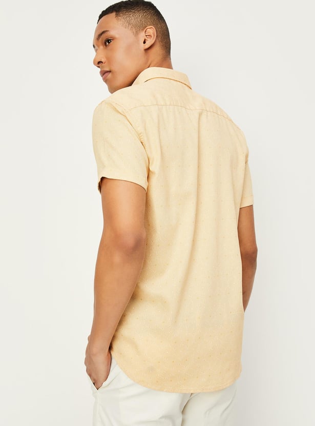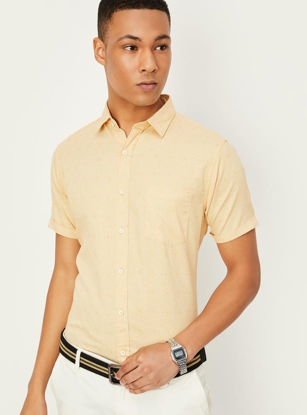 Your casual wardrobe will be boosted by the addition of this printed shirt, which has a spread collar, half sleeves, and a button placket. For a stylish look, wear this shirt with some jeans and sneakers.
