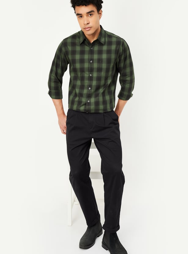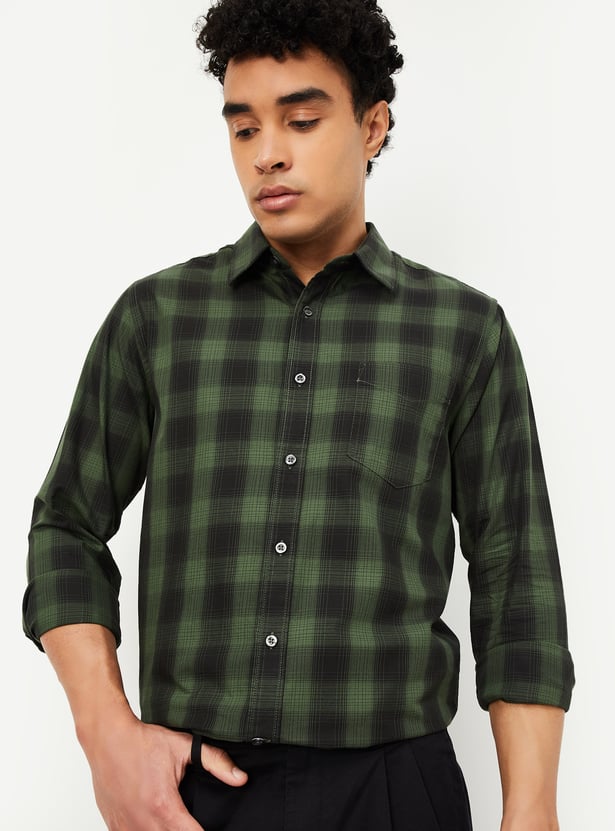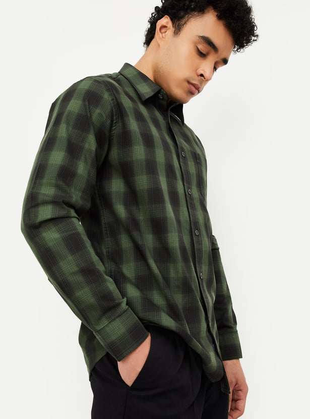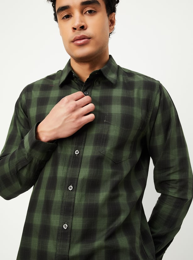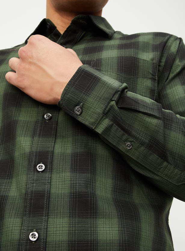 Refine your casual attire with this timeless checked shirt. Crafted with a spread collar, full sleeves with button cuffs, a patch pocket, and button placket, it's a symbol of modern elegance.