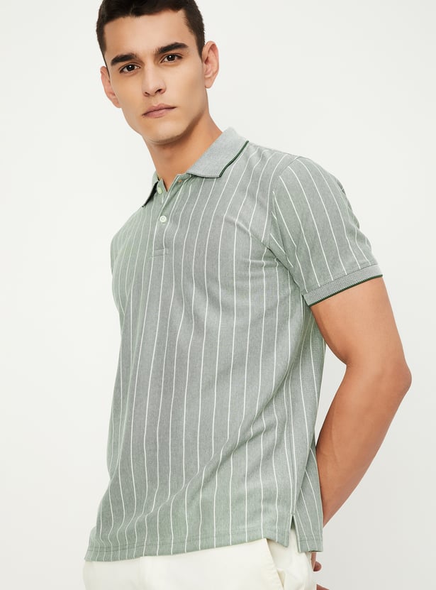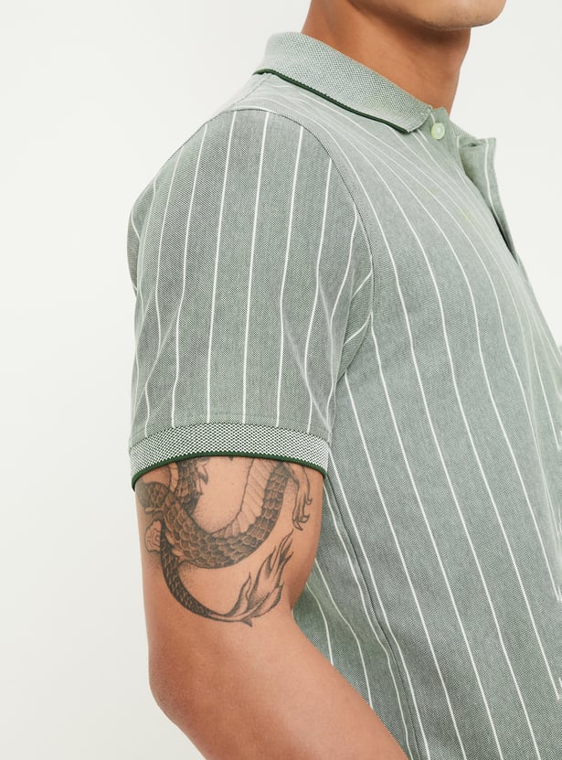 Men Slim Fit Striped Polo T-shirt