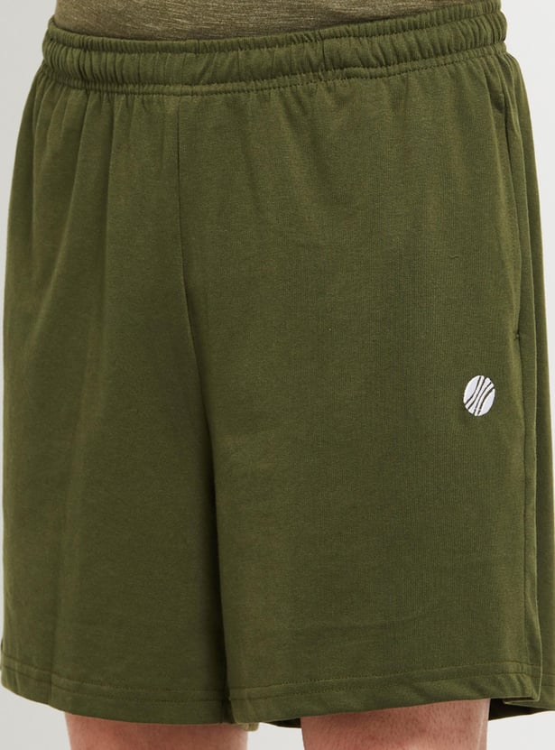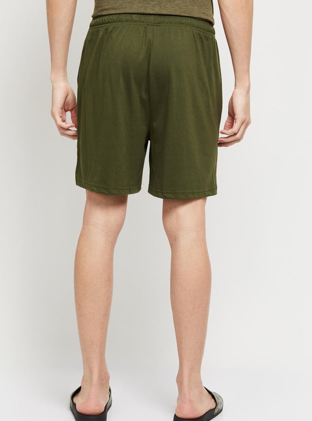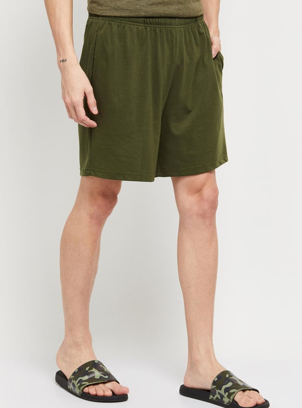 Ease up the casual look with this comfortable pair of shorts designed with an elastic waistband and insert pockets.