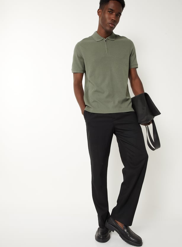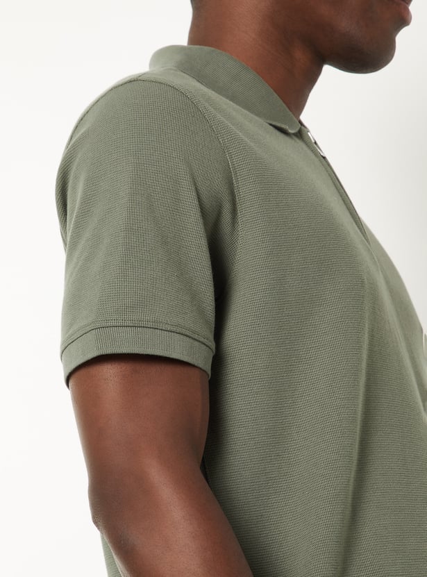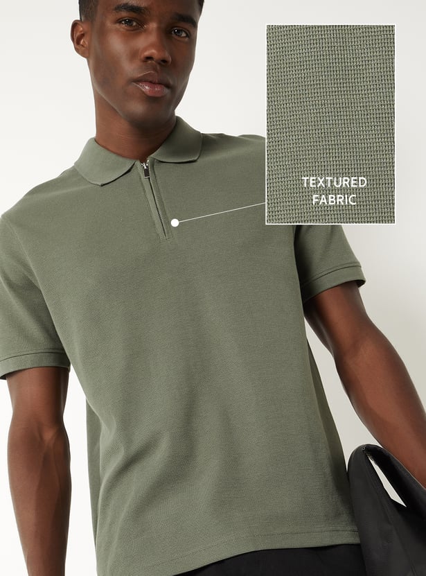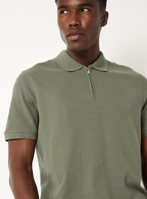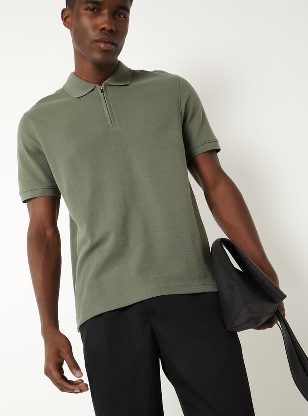 Stand out in style with this smart polo collar T‑shirt, featuring a sleek zip placket that adds a modern edge to its classic appeal. Finished with half sleeves for a versatile look.