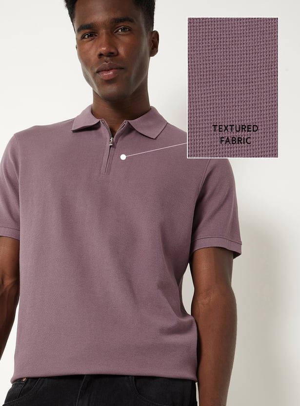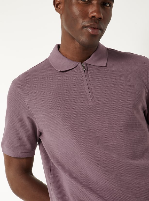 Stand out in style with this smart polo collar T‑shirt, featuring a sleek zip placket that adds a modern edge to its classic appeal. Finished with half sleeves for a versatile look.