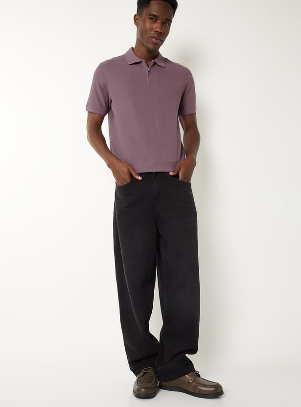 Men Solid Zipper Polo T-shirt