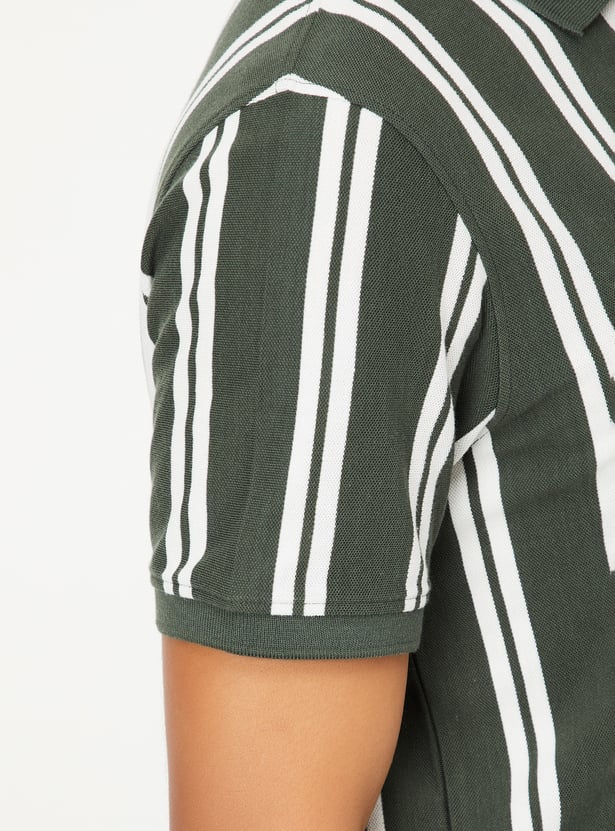 This striped polo T-shirt brings the perfect mix of classic and modern style. With a half button placket, polo collar, and half sleeves, it's a versatile piece for any casual outing.