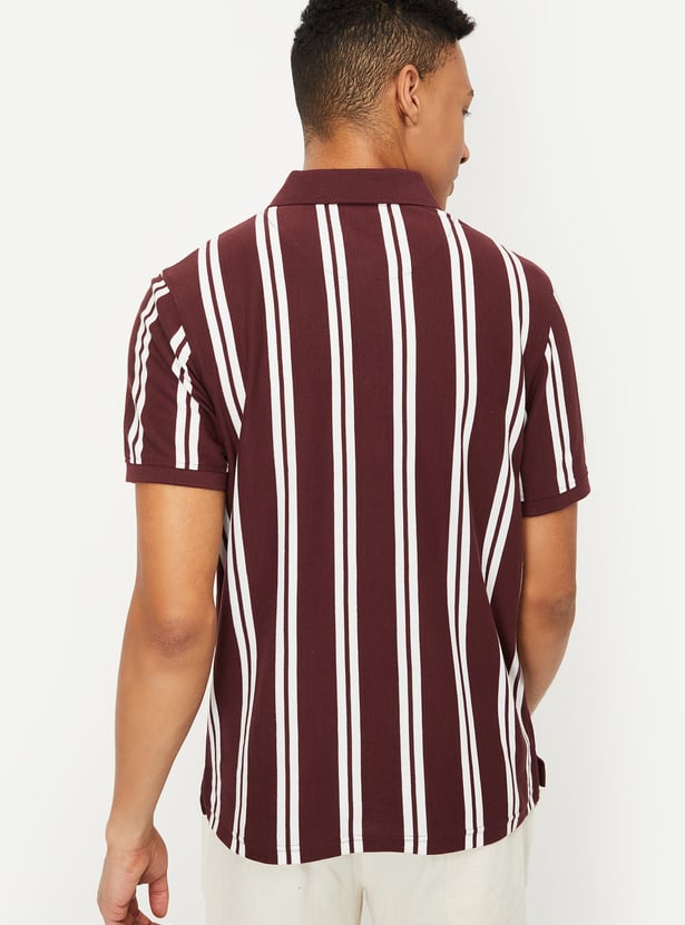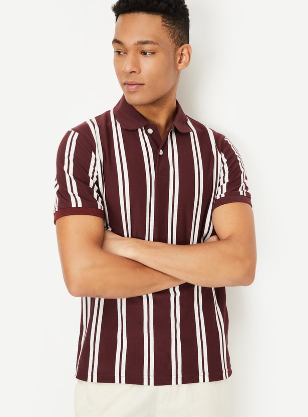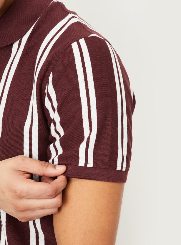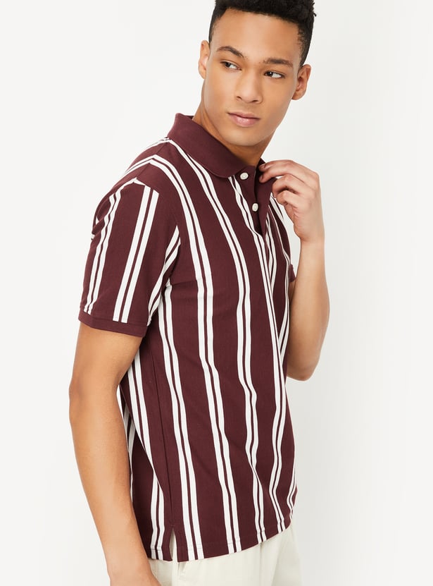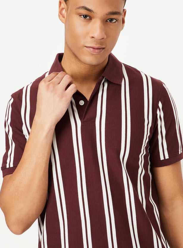 This striped polo T-shirt brings the perfect mix of classic and modern style. With a half button placket, polo collar, and half sleeves, it's a versatile piece for any casual outing.
