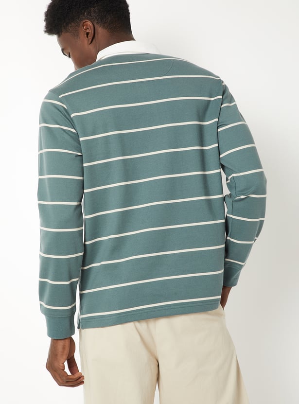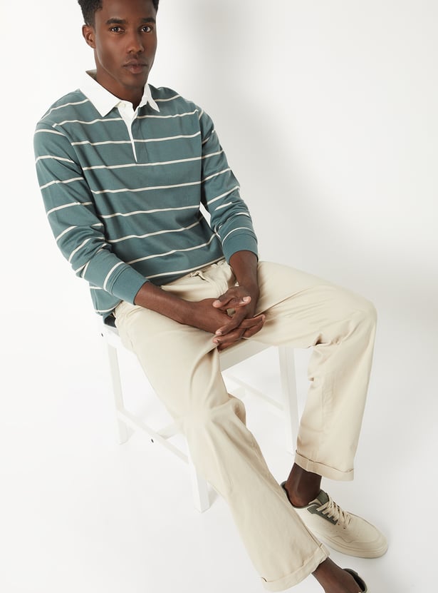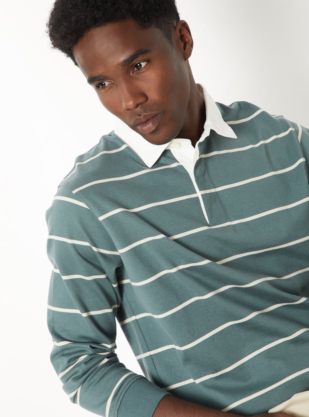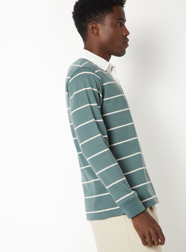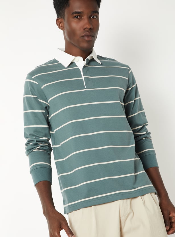 Refresh your everyday wardrobe with this striped polo T-shirt, crafted with a smart polo collar and full sleeves for a timeless look.