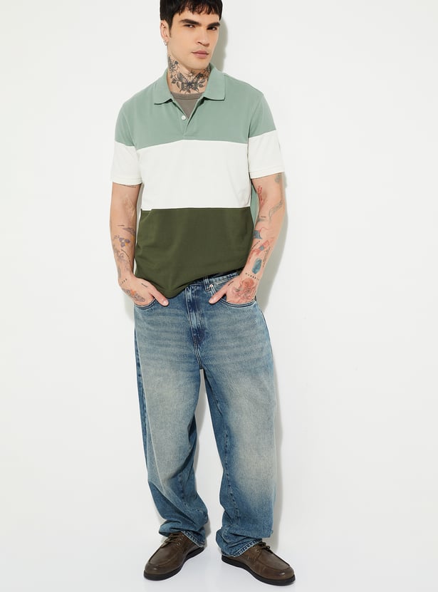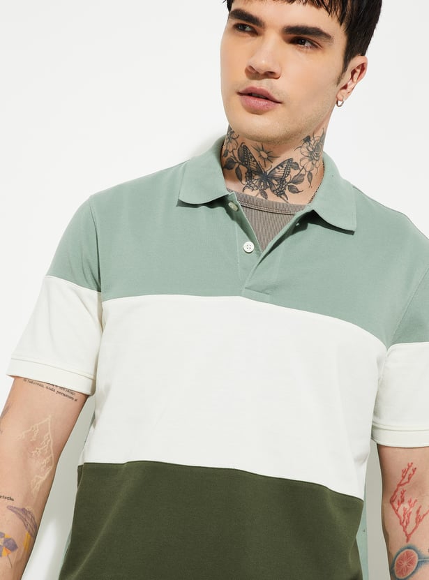 Elevate your casual style with this striped polo T-shirt. Featuring a classic polo collar, half sleeves, and a two-button placket, it combines refined comfort with timeless appeal.