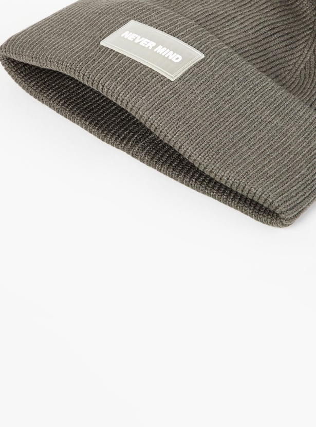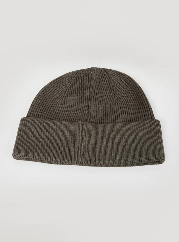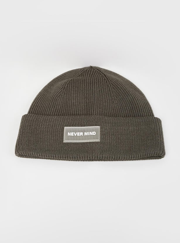 Accessorize your casual outfits this winter with this beanie cap. It features a knit pattern, a folded cuff, and an applique detail. Style this beanie with a Pullover, cargo pants, and sneakers.