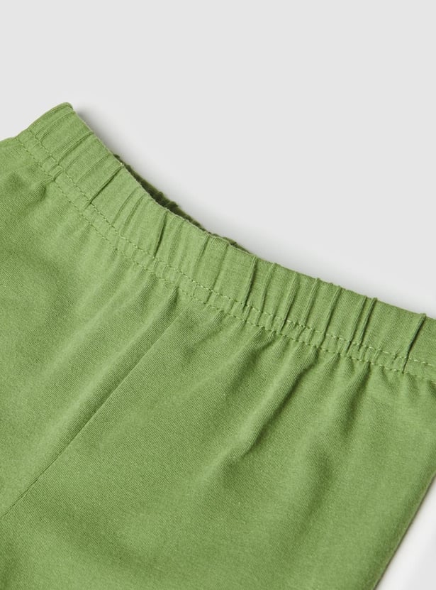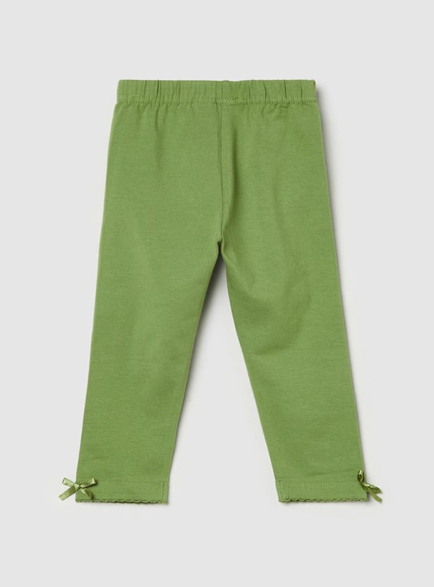 An ideal pick for a casual wardrobe, this pair of leggings are designed with a solid surface, a bow detailed hem, and an elastic waistline.