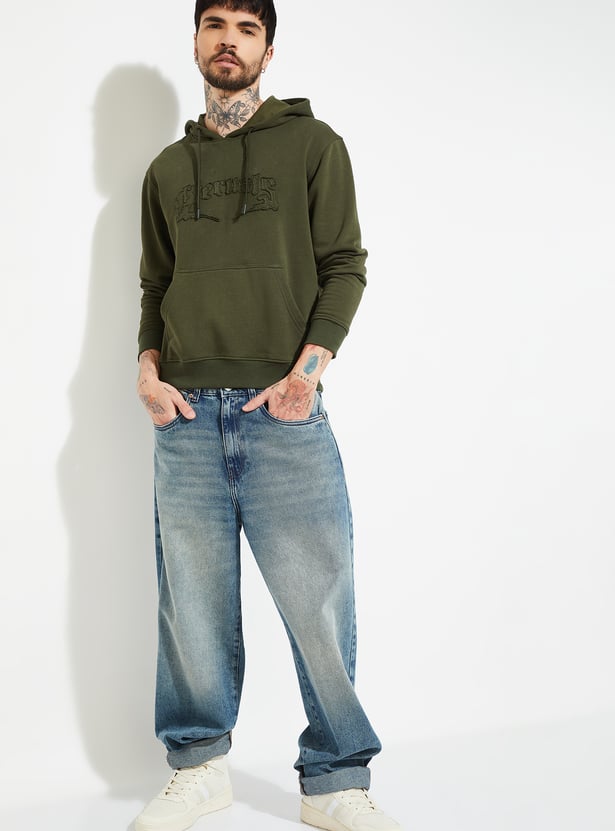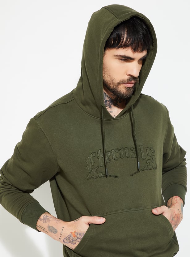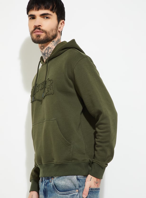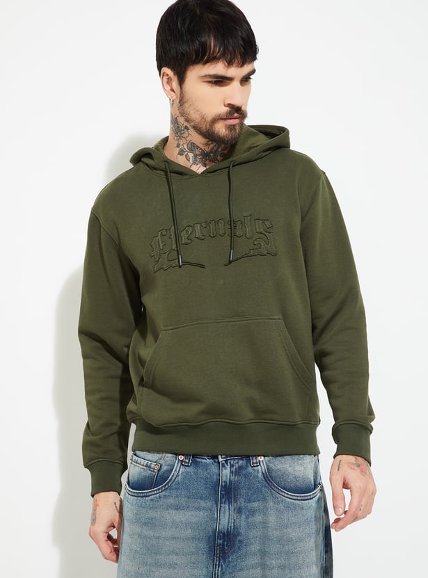 Stay cozy and stylish in this embroidered hooded sweatshirt, featuring a snug hooded neck, full sleeves, and a handy kangaroo pocket. Finished with a ribbed hem, it blends comfort with a touch of detail for everyday wear
