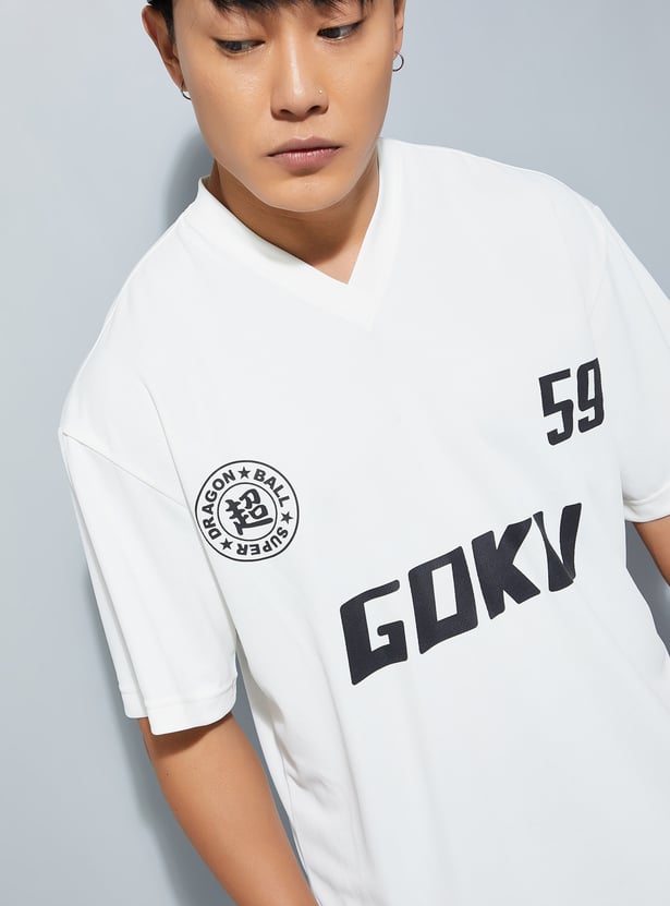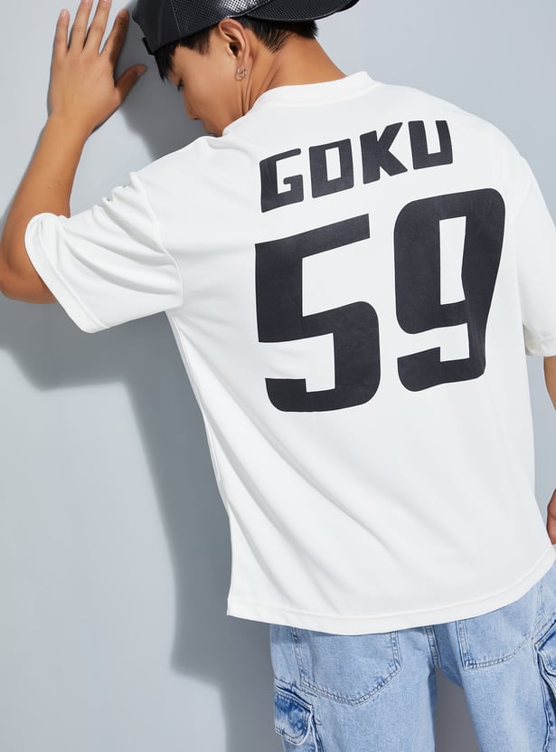 Stay stylishly relaxed in this Goku printed oversized T-shirt, featuring a flattering V-neck and half sleeves for all-day comfort. Its easy silhouette makes it a versatile pick for casual outings.
