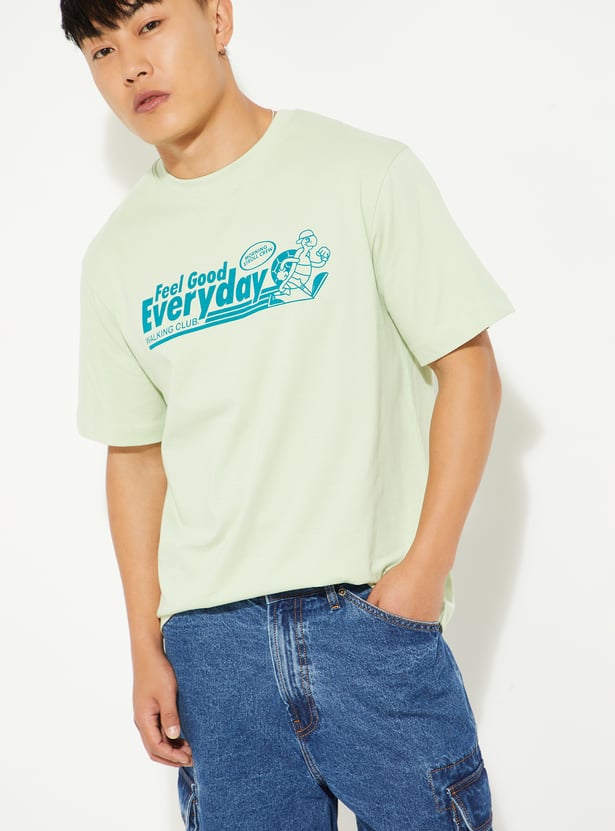 Step into effortless cool with this graphic-printed T‑shirt. Designed with a crew neck and half sleeves, this tee blends everyday comfort with a bold, stylish edge—making it a versatile pick for laid‑back days or statement streetwear looks.