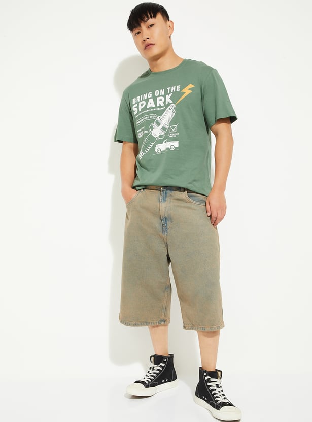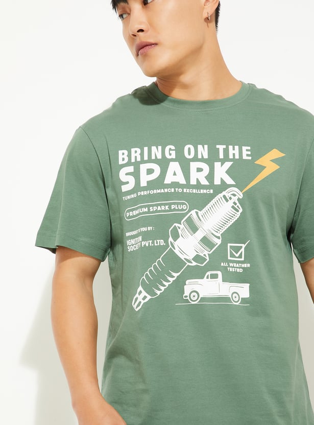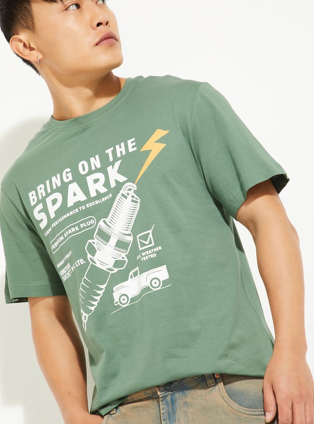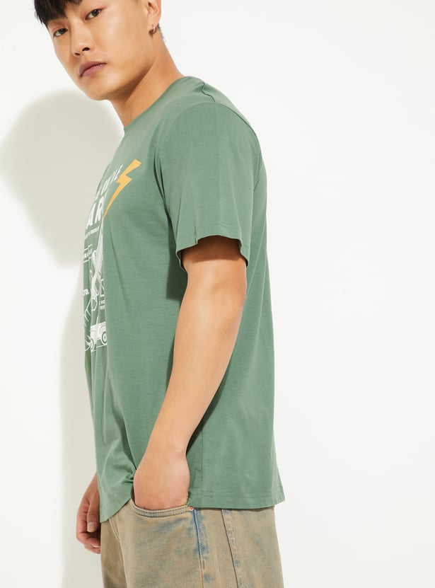 Step into effortless cool with this graphic-printed T‑shirt. Designed with a crew neck and half sleeves, this tee blends everyday comfort with a bold, stylish edge—making it a versatile pick for laid‑back days or statement streetwear looks.