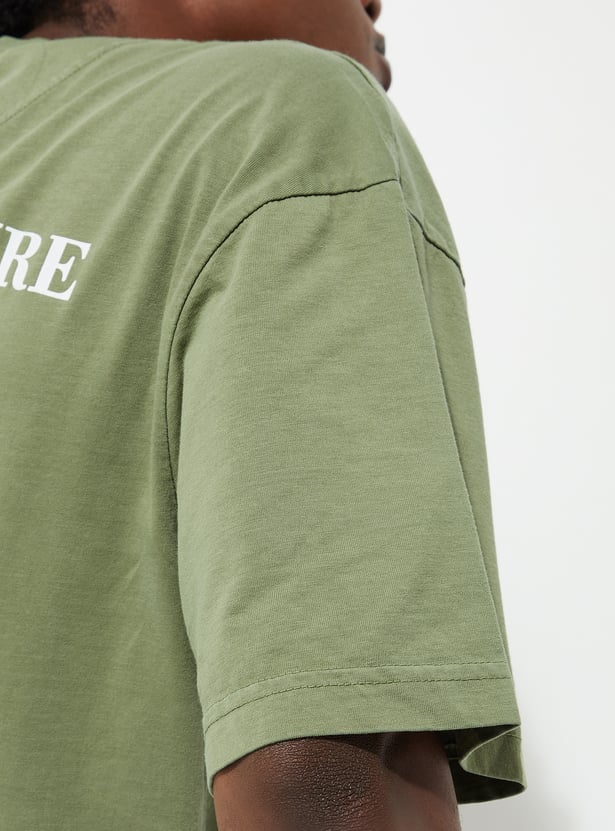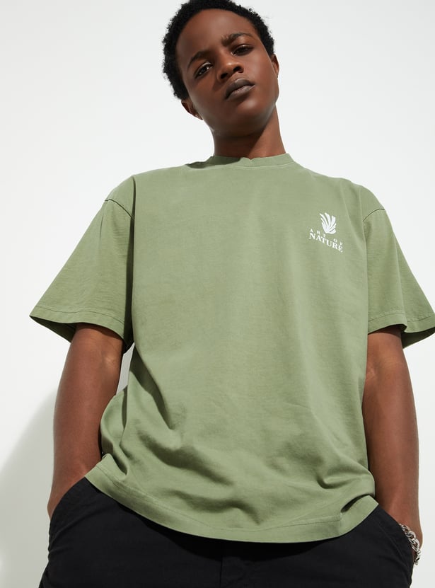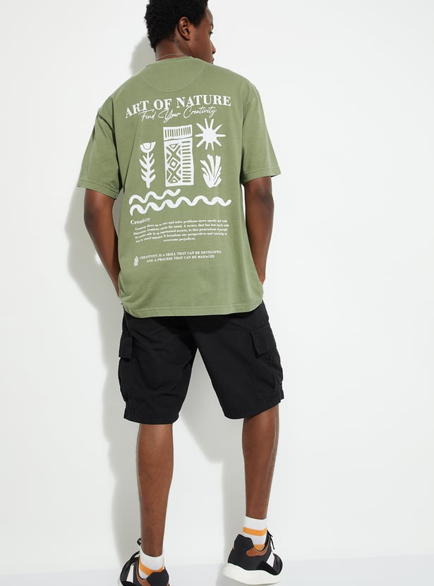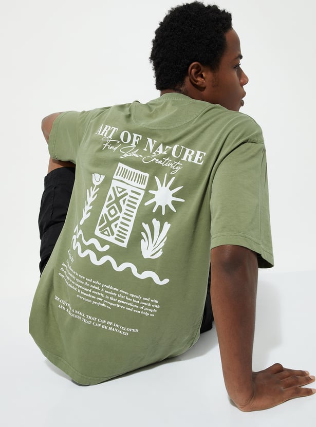 Chill in style with this effortlessly cool T-shirt, your new go-to piece. Featuring half sleeves and eye-catching back graphic prints, its oversized fit delivers ultimate comfort.