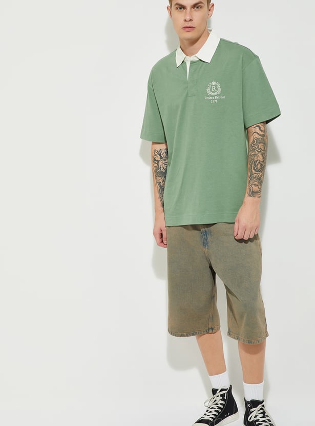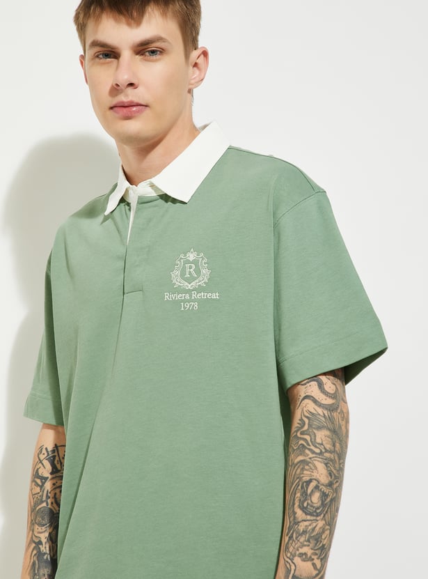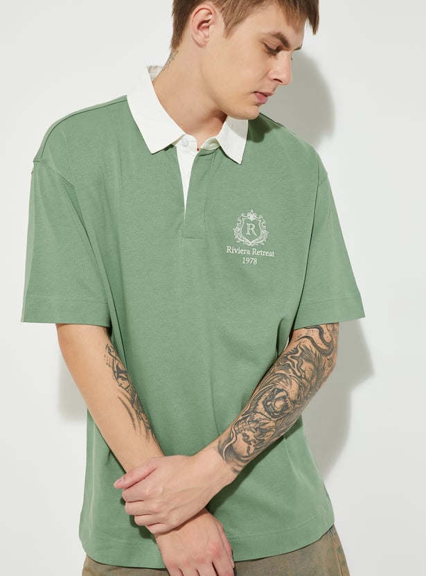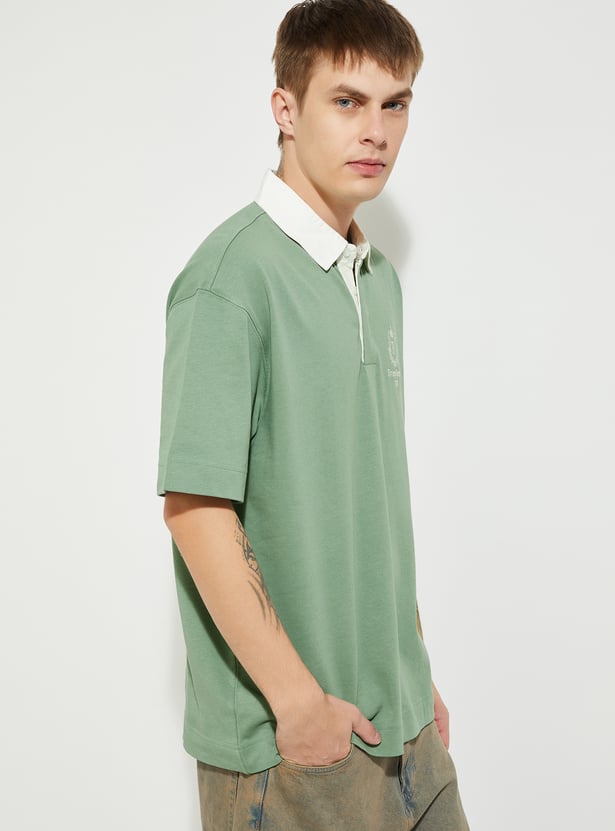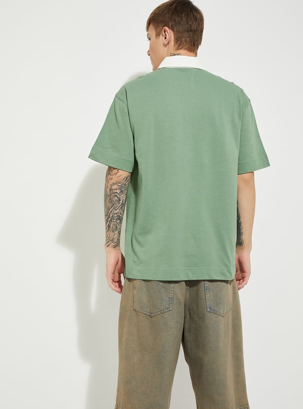 URB_N Men Oversized Polo T-shirt with Contrast Collar