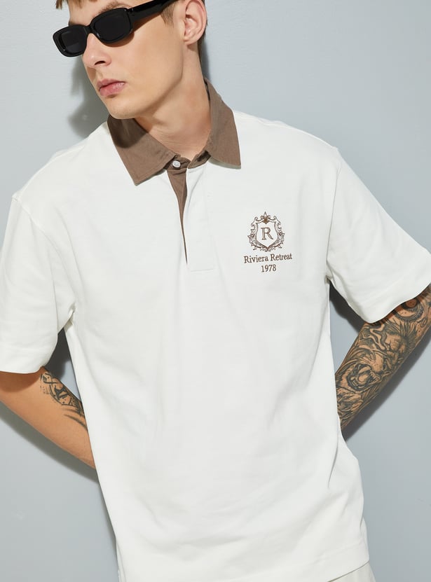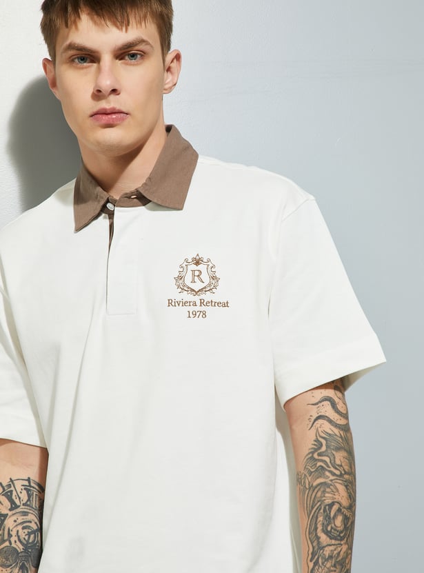 URB_N Men Oversized Polo T-shirt with Contrast Collar