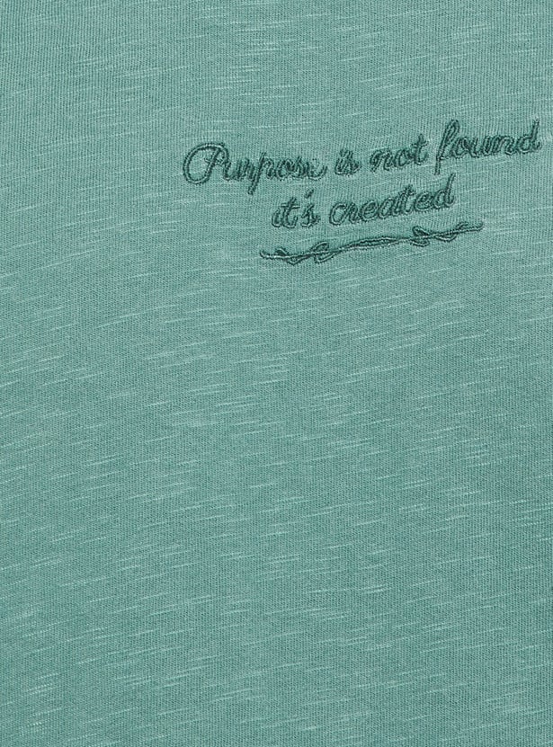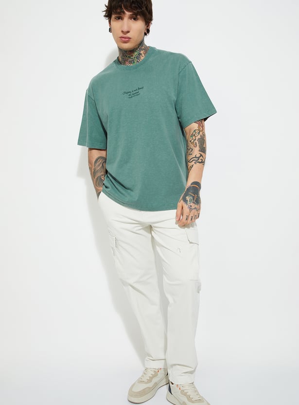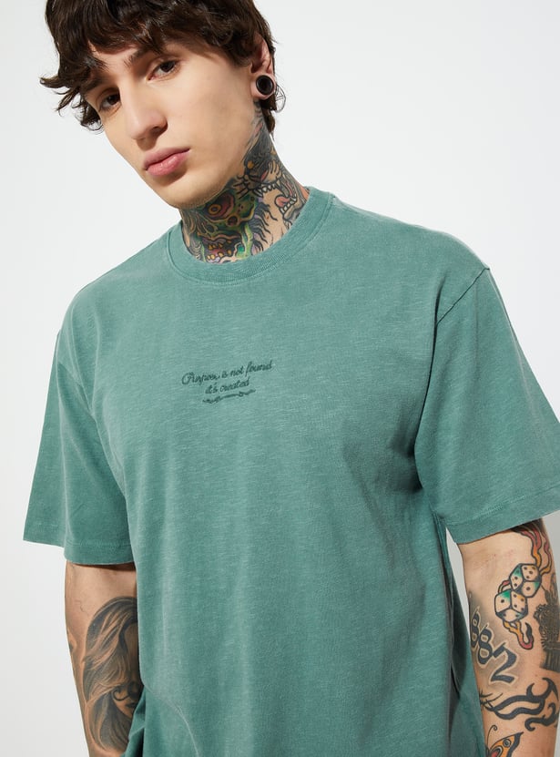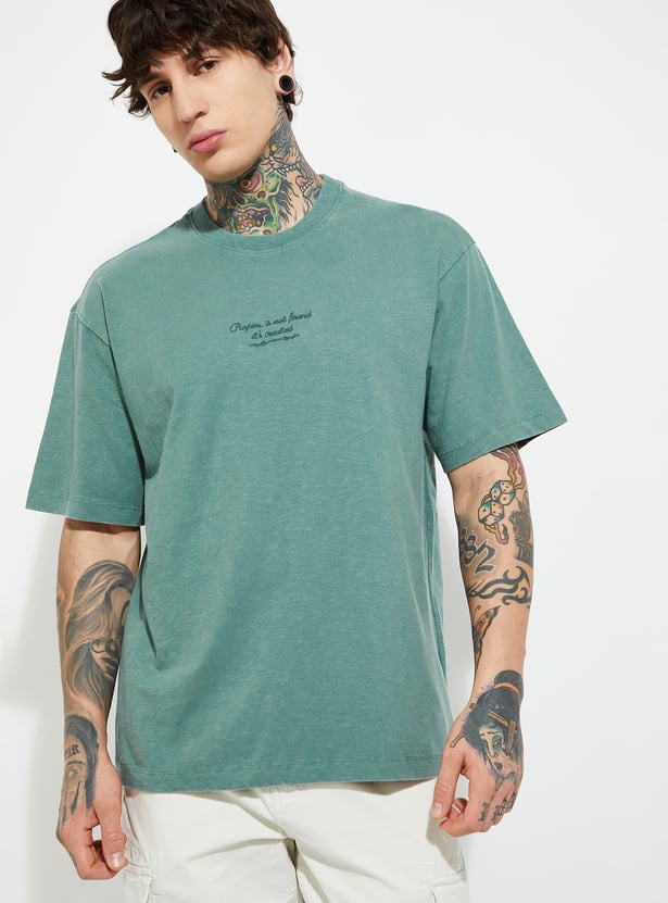 This oversized T-shirt features a classic crew neck and half sleeves for a relaxed, on-trend silhouette. The subtle texture adds depth to its laid-back design.