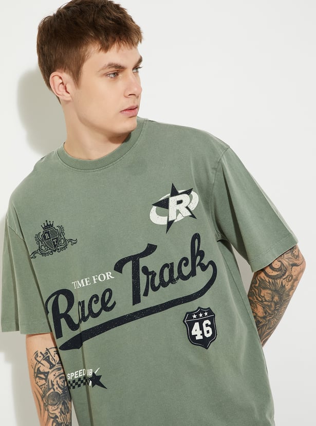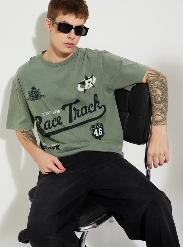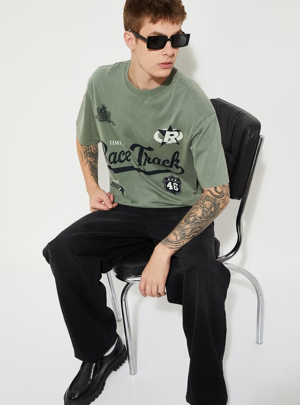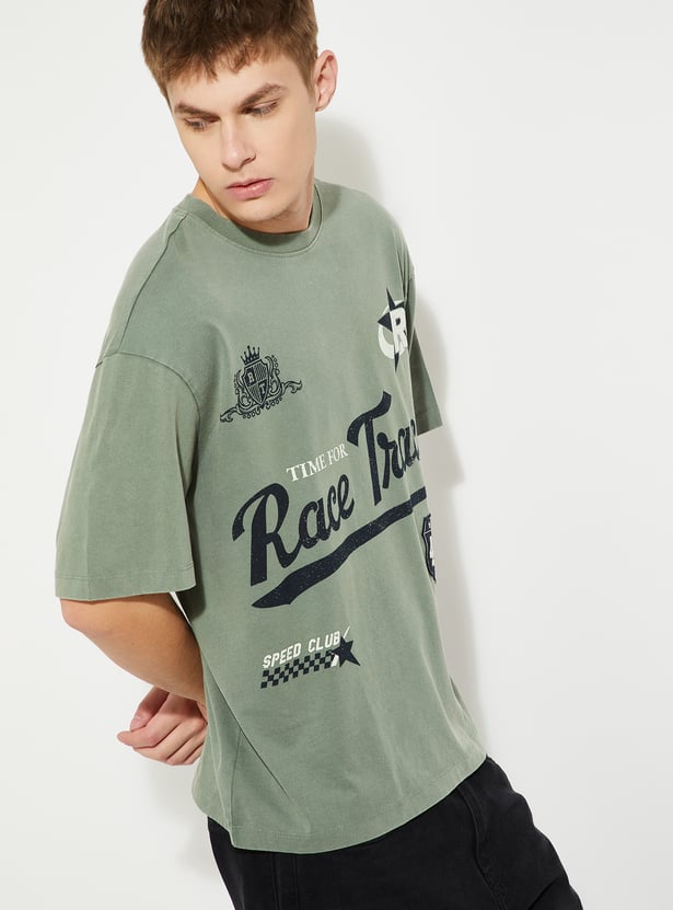 This oversized T-shirt is a stylish addition to your wardrobe. Featuring a bold printed design, it offers a unique aesthetic. The crew neck and short sleeves ensure comfort and a casual look. Additional design elements enhance its trendy appeal, making it a versatile choice.