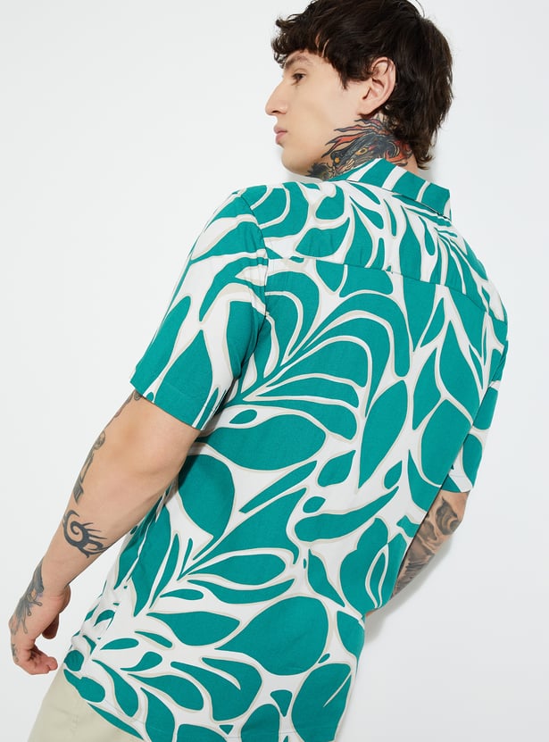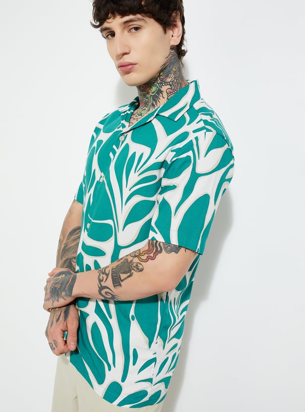 This printed regular fit shirt brings a laid-back charm to your everyday style. Featuring a resort collar, button placket, and half sleeves, it’s perfect for casual outings and warm-weather days.