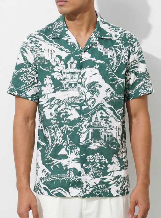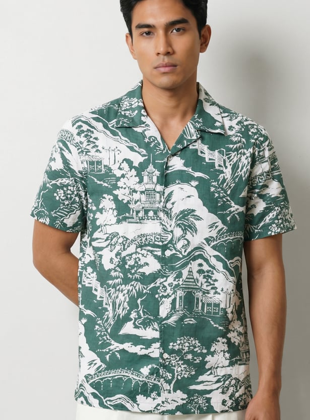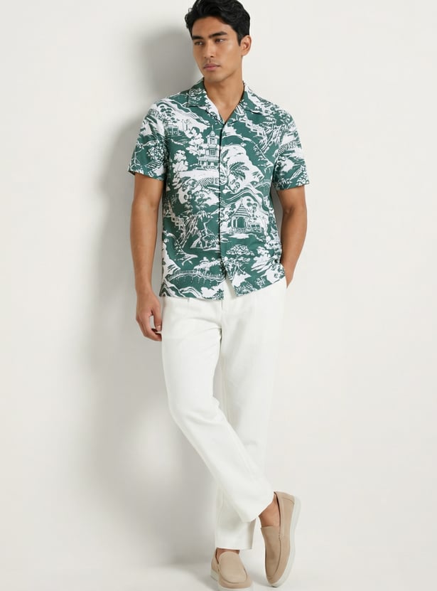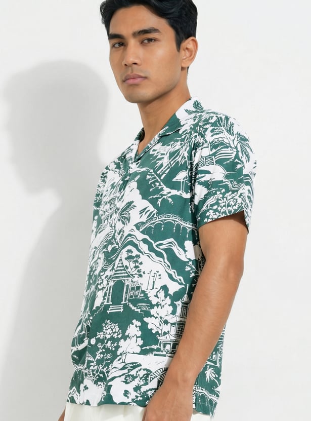 Channel easygoing style with this printed shirt. Designed with a resort collar and half sleeves, it’s perfect for days that call for comfort with a touch of flair. The regular fit and lightweight feel make it ideal for casual outings or weekend getaways.